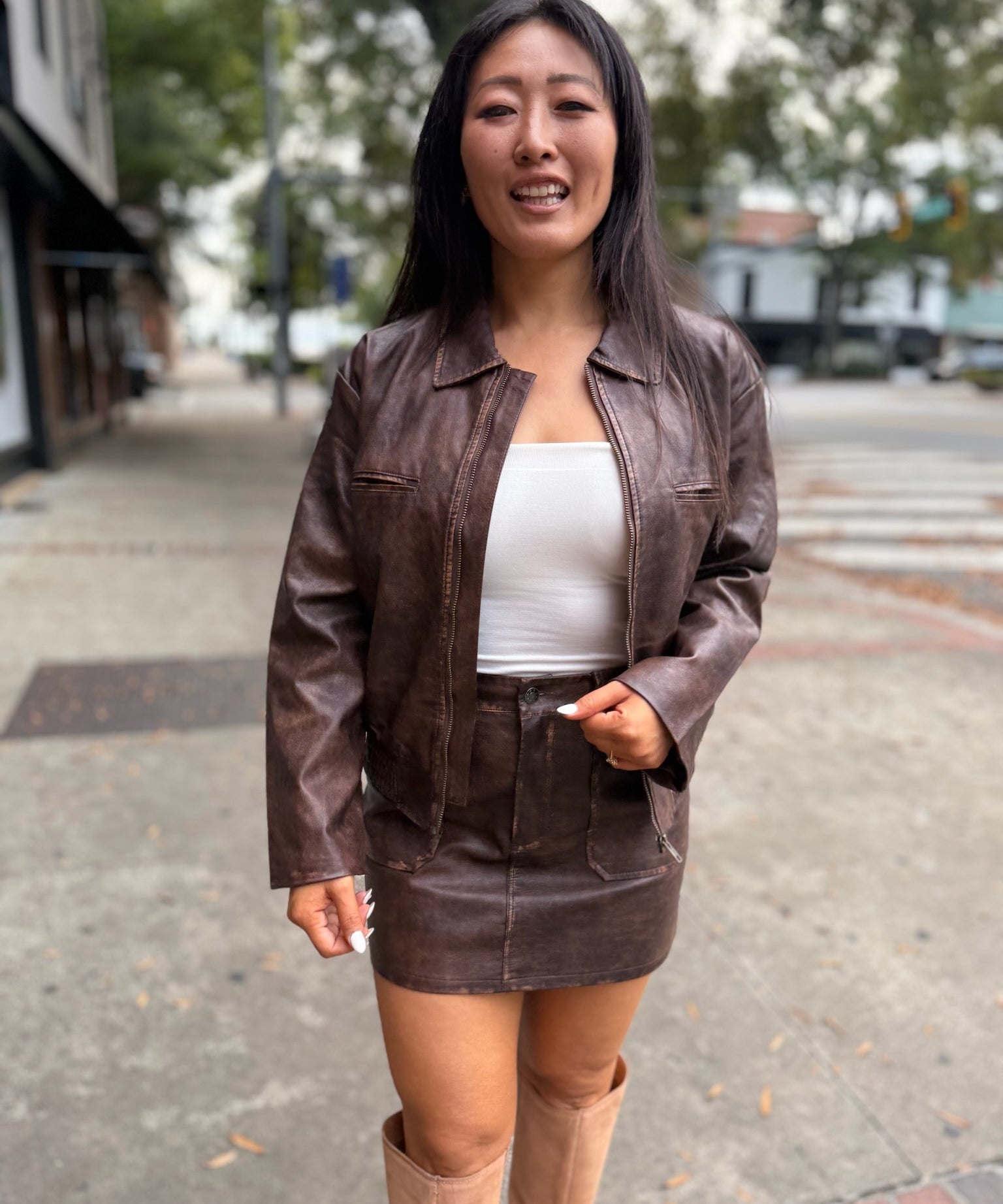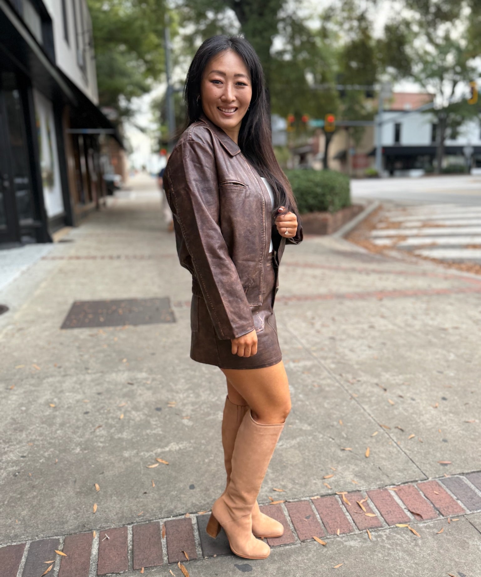 Brown Multi Plaid Mid-Length Button Front Jacket