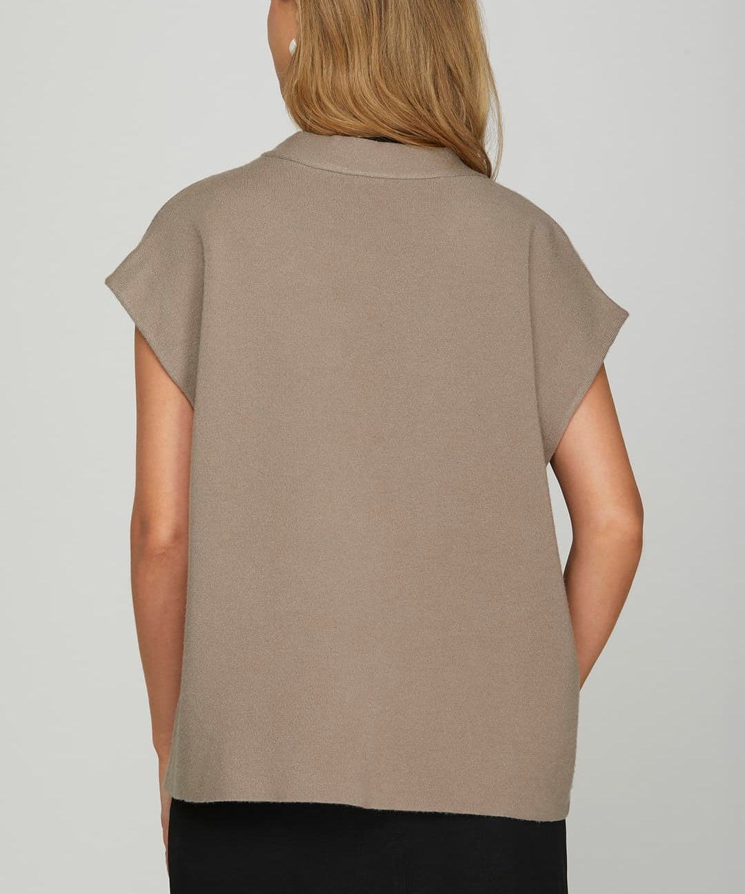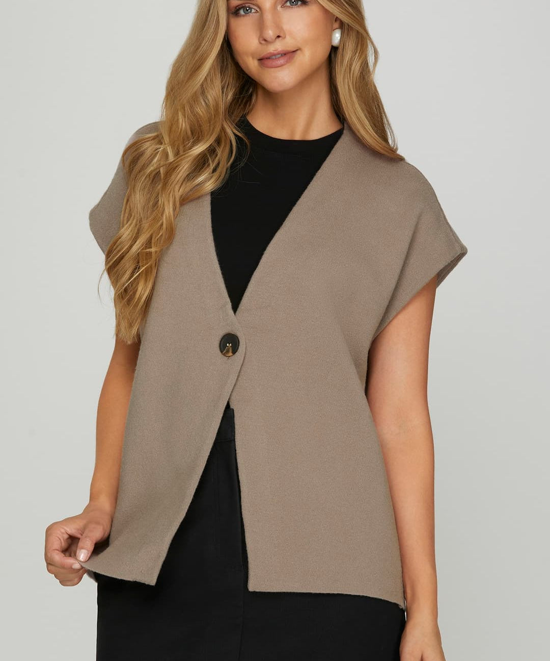 Over Sized Single Button Sweater Vest - LT.Mocha