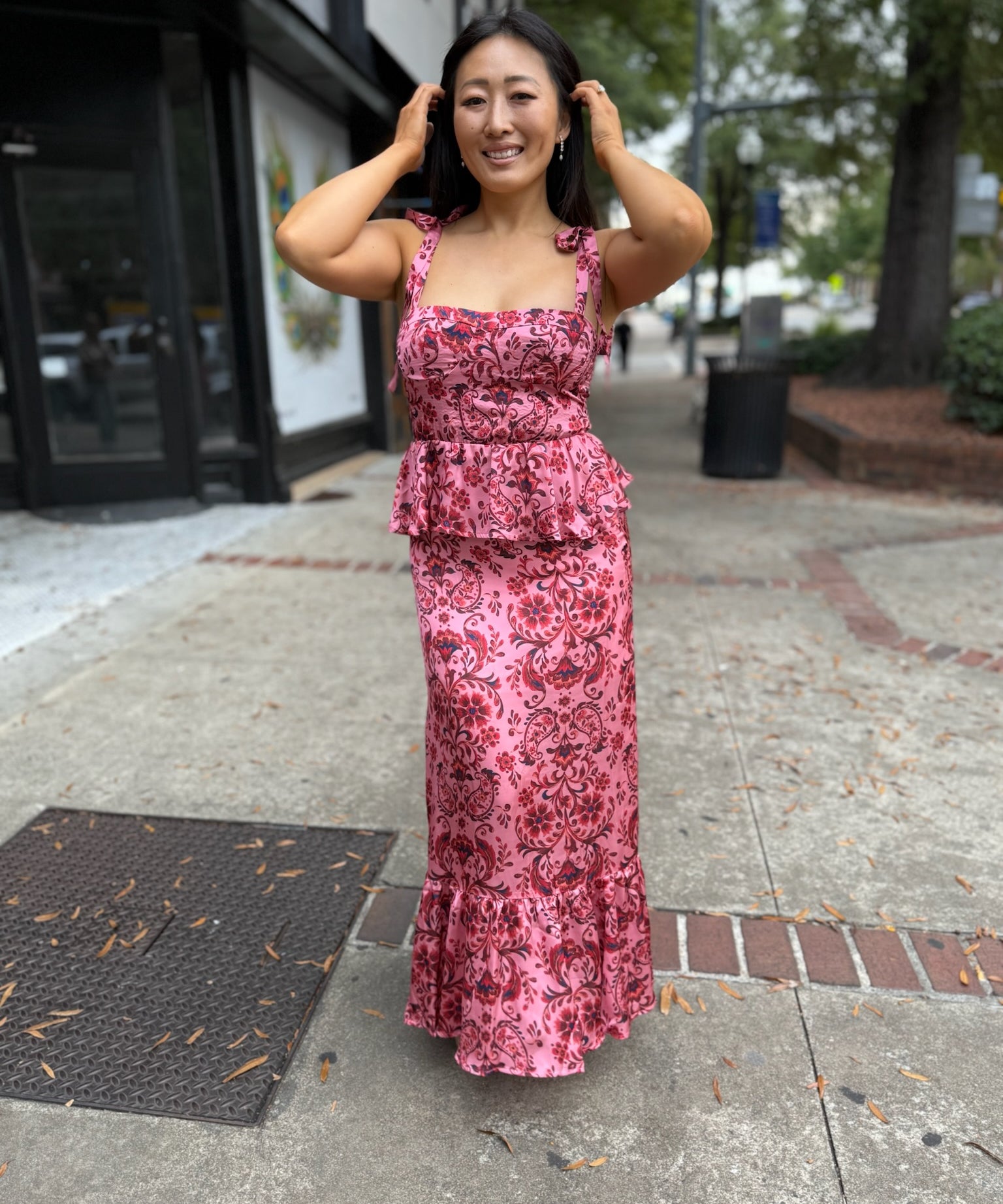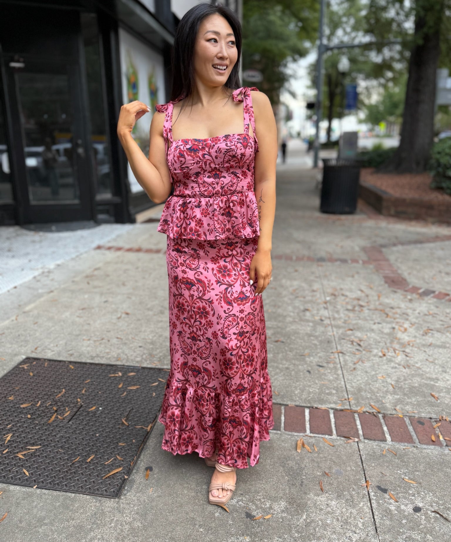 Salmon Red Leslie Ruffle Dress