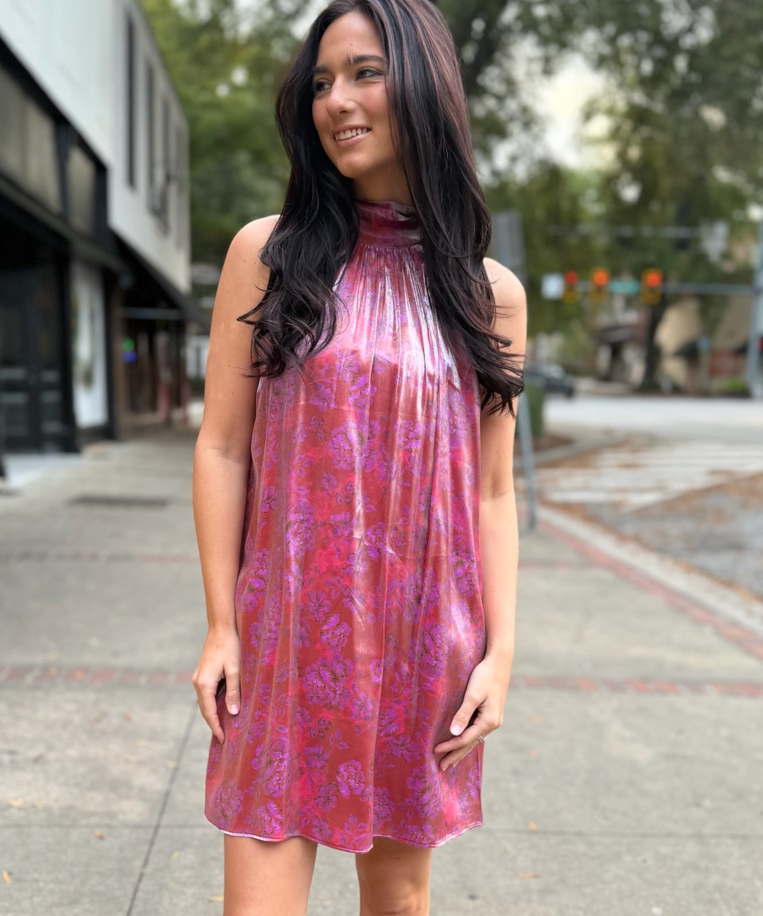 Red Multi Floral Glow High Neck Mini Tent Dress