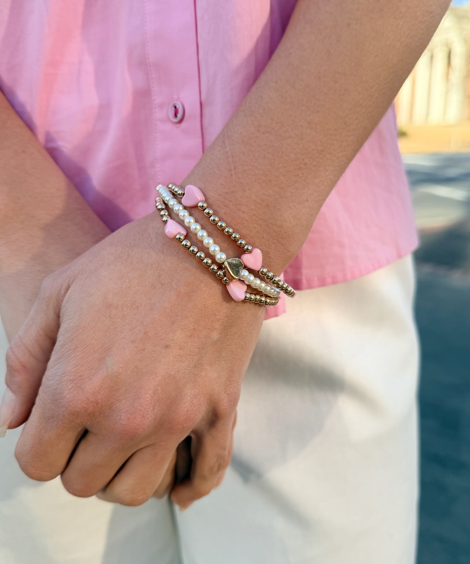 Water Resistant Sweet Heart Pearl Bracelet Set