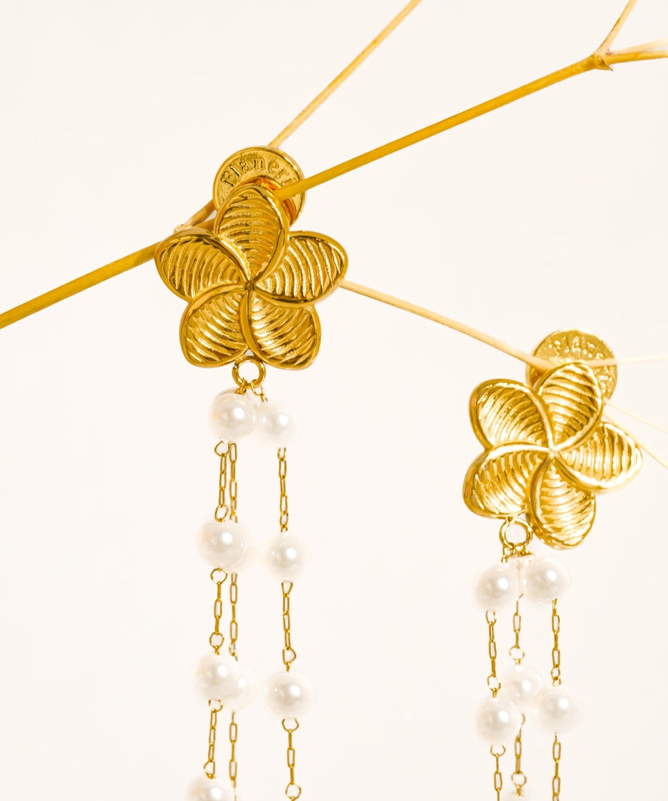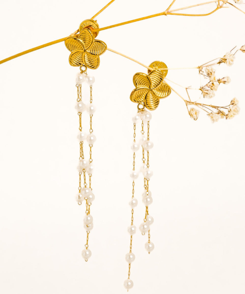 Thalina 18K Gold Flower Pearl Dangle Earrings