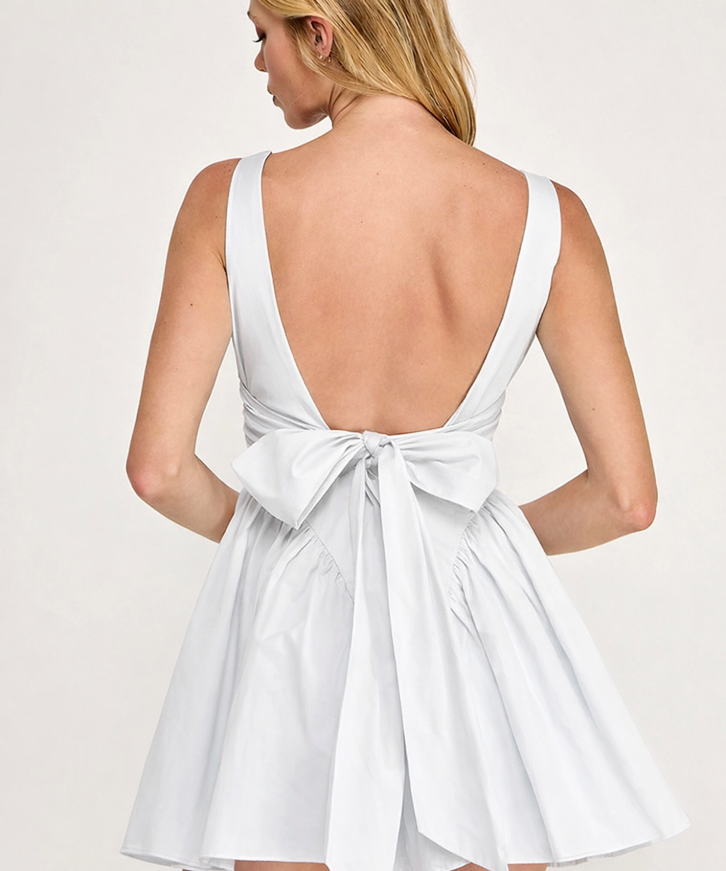 White Bow Back Cotton Mini Dress