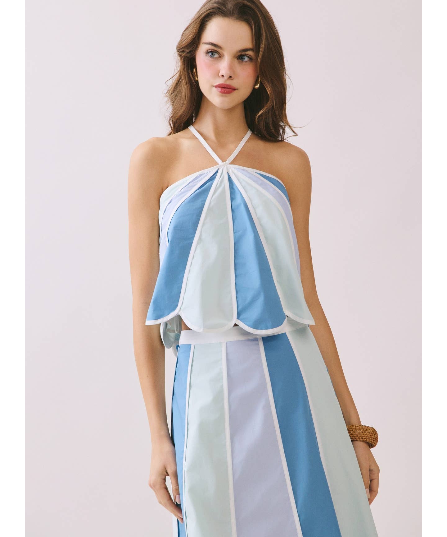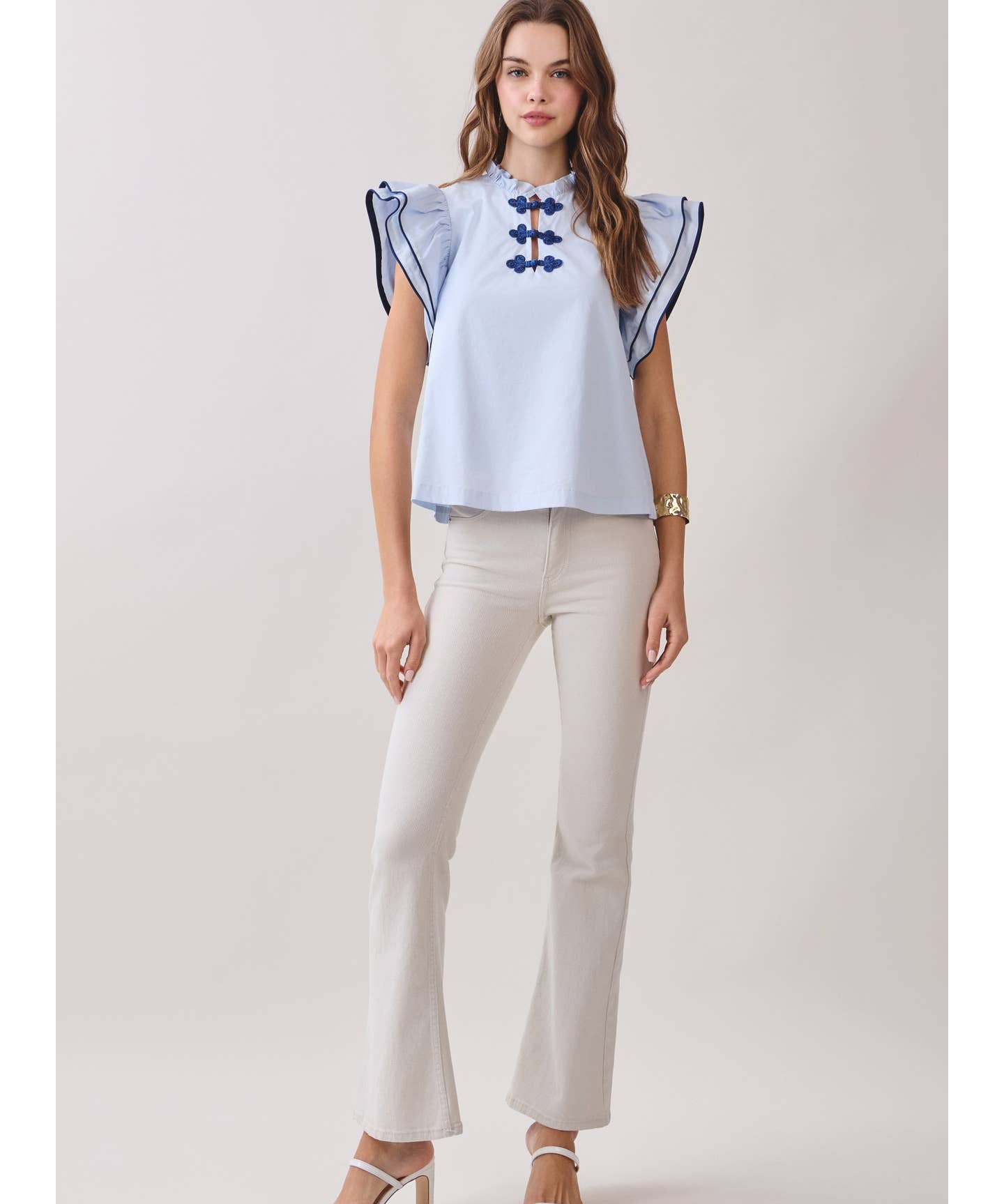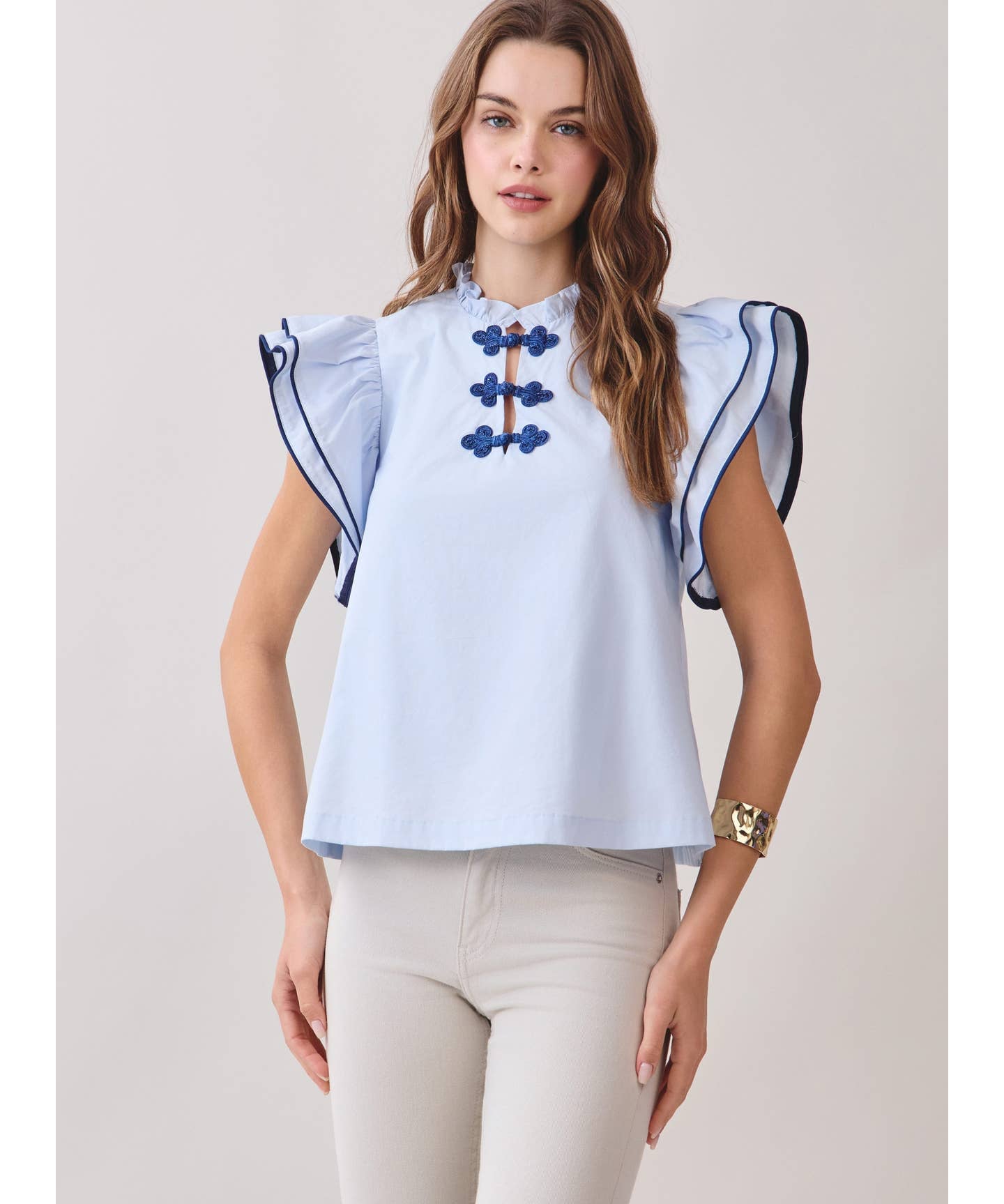 Ruffle Layered Flutter Sleeves Contrast Piping Top