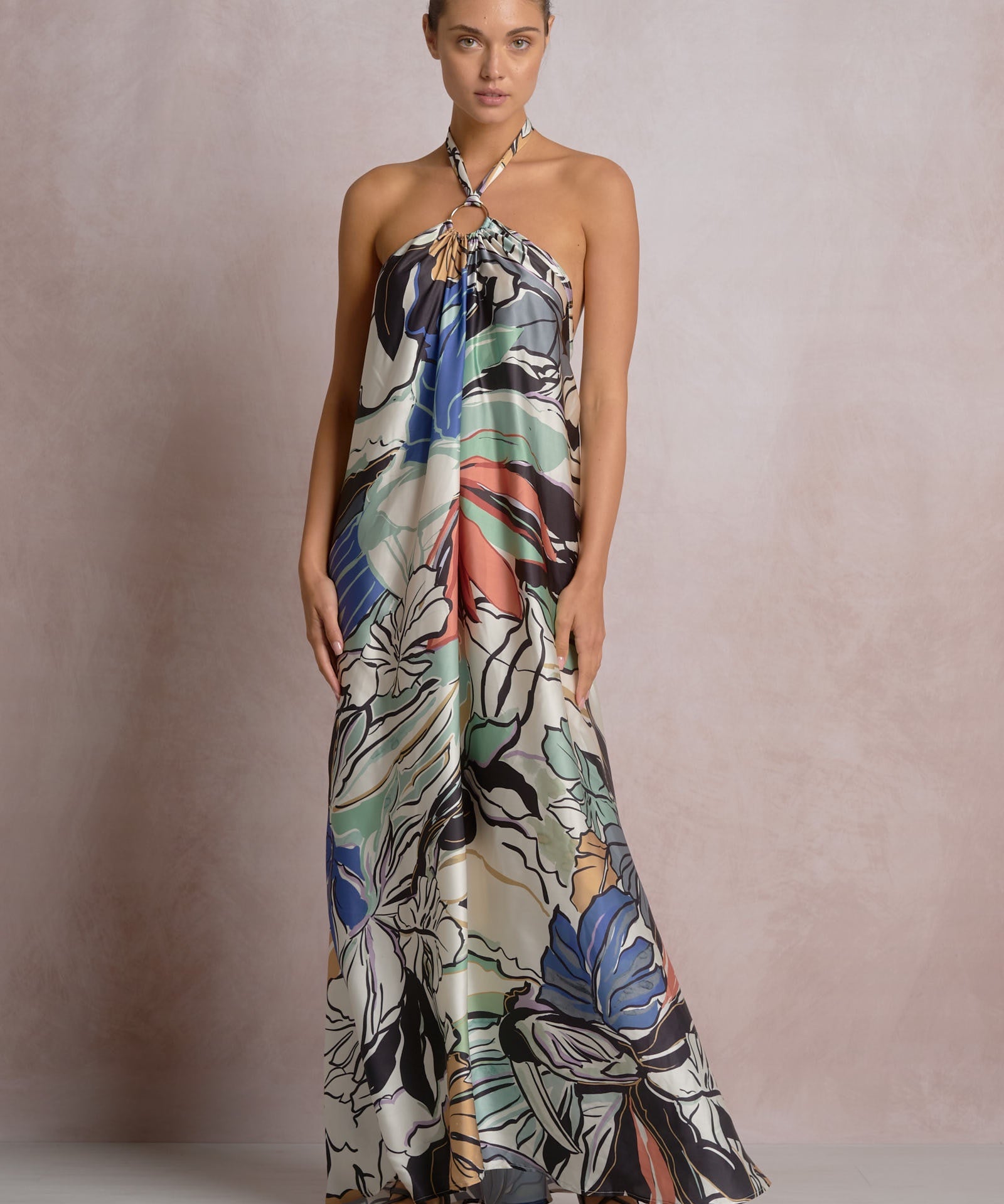 Emerald/Light Lime Sleeveless Side Cut-Out Flower Detail Long Dress