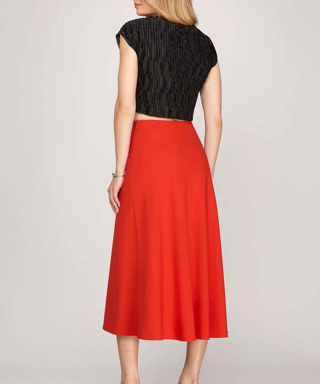 Dark Taupe Double Knit High-waist Pintuck Wide Leg Pants