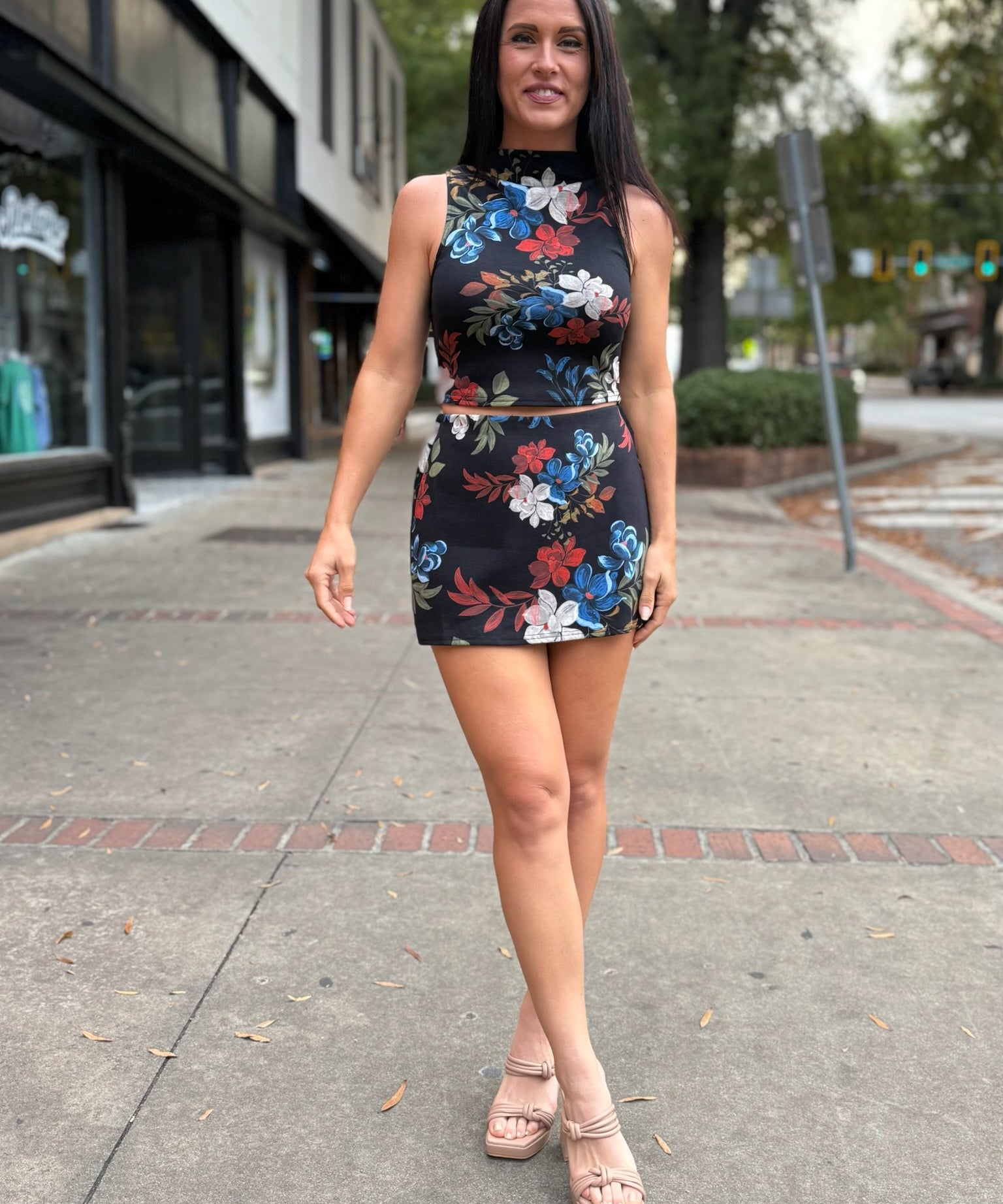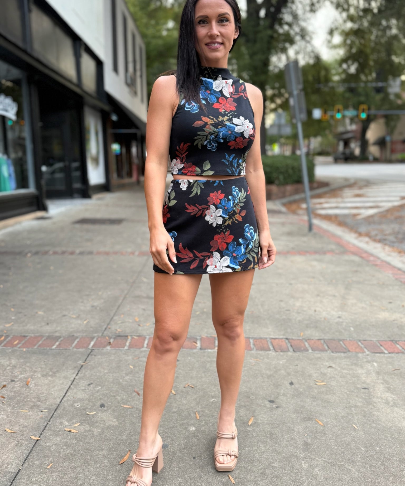 Black Multi Four Seasons Highneck Crop Top