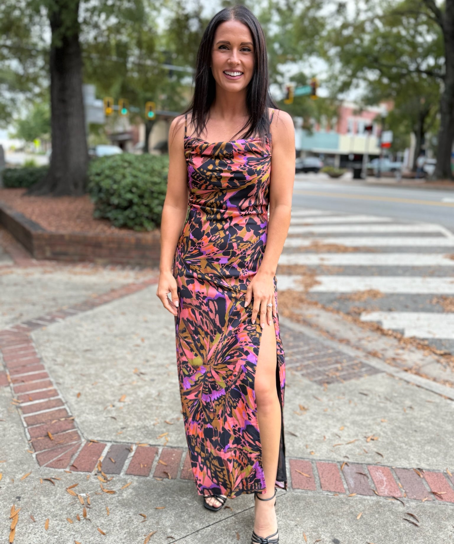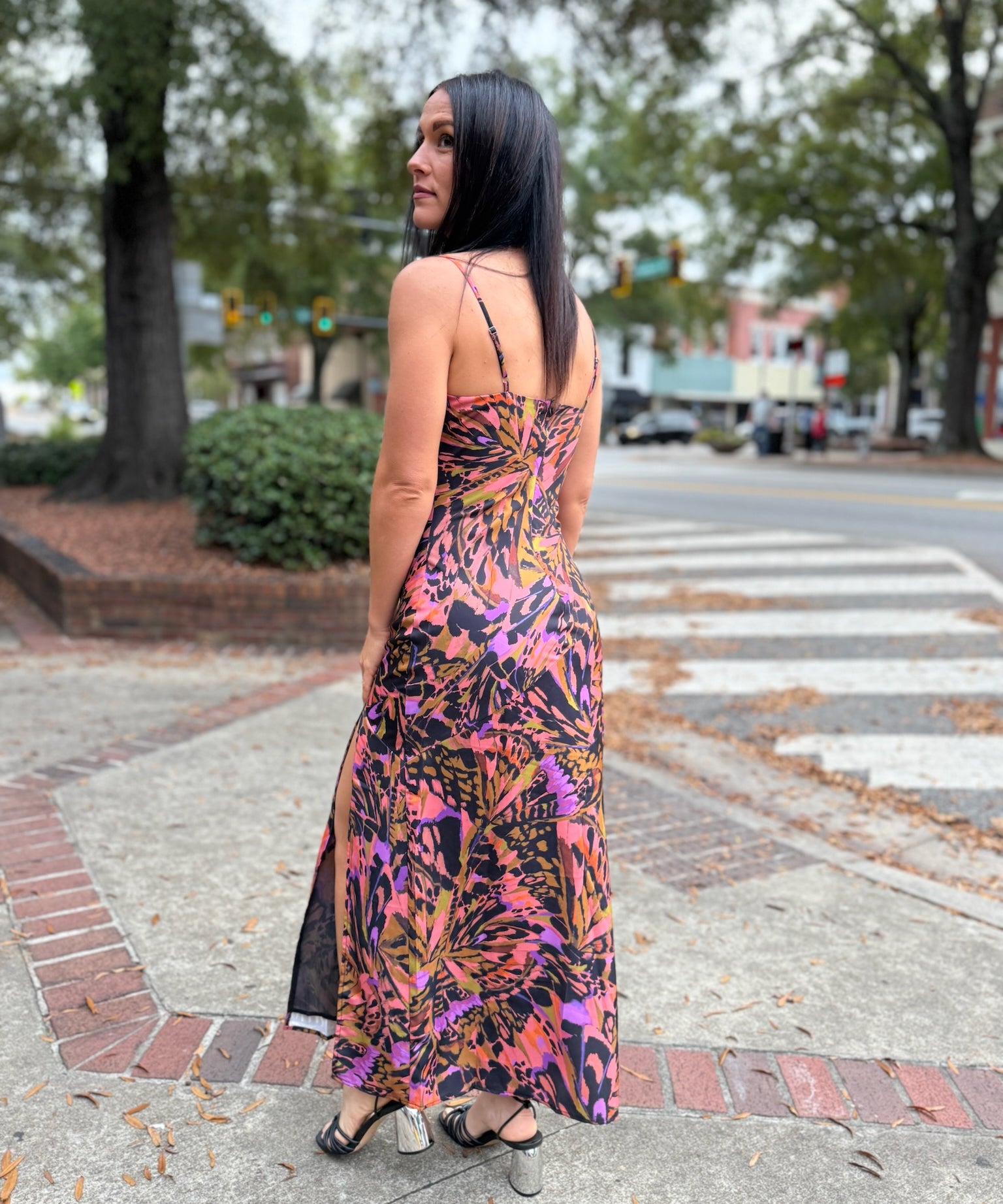 Multi Butterfly Kiss High Slit Bias Maxi Slip Dress