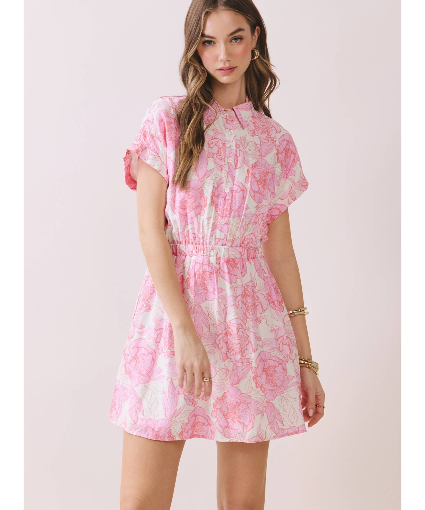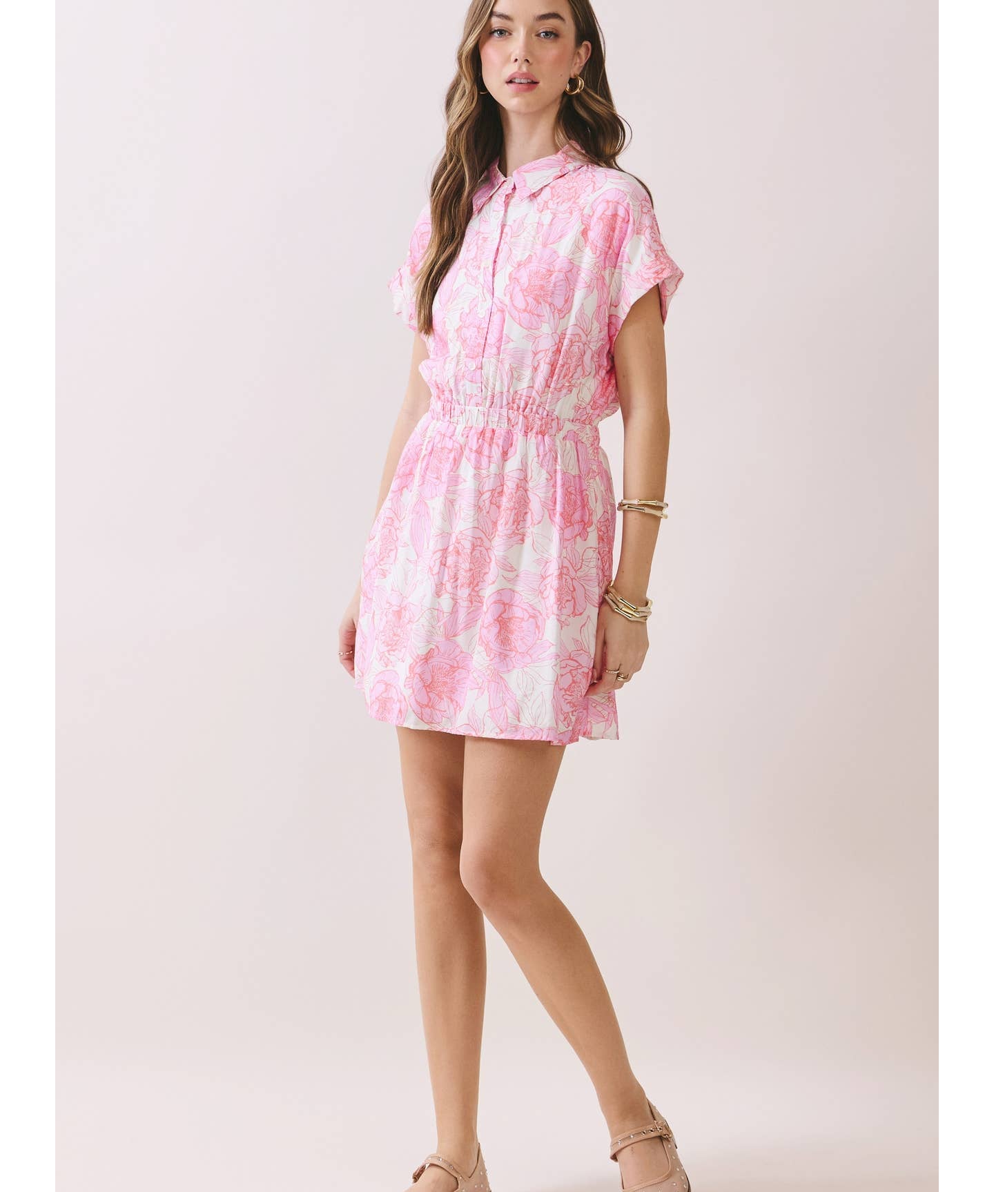 Floral Print Elastic Waist A Line Mini Dress