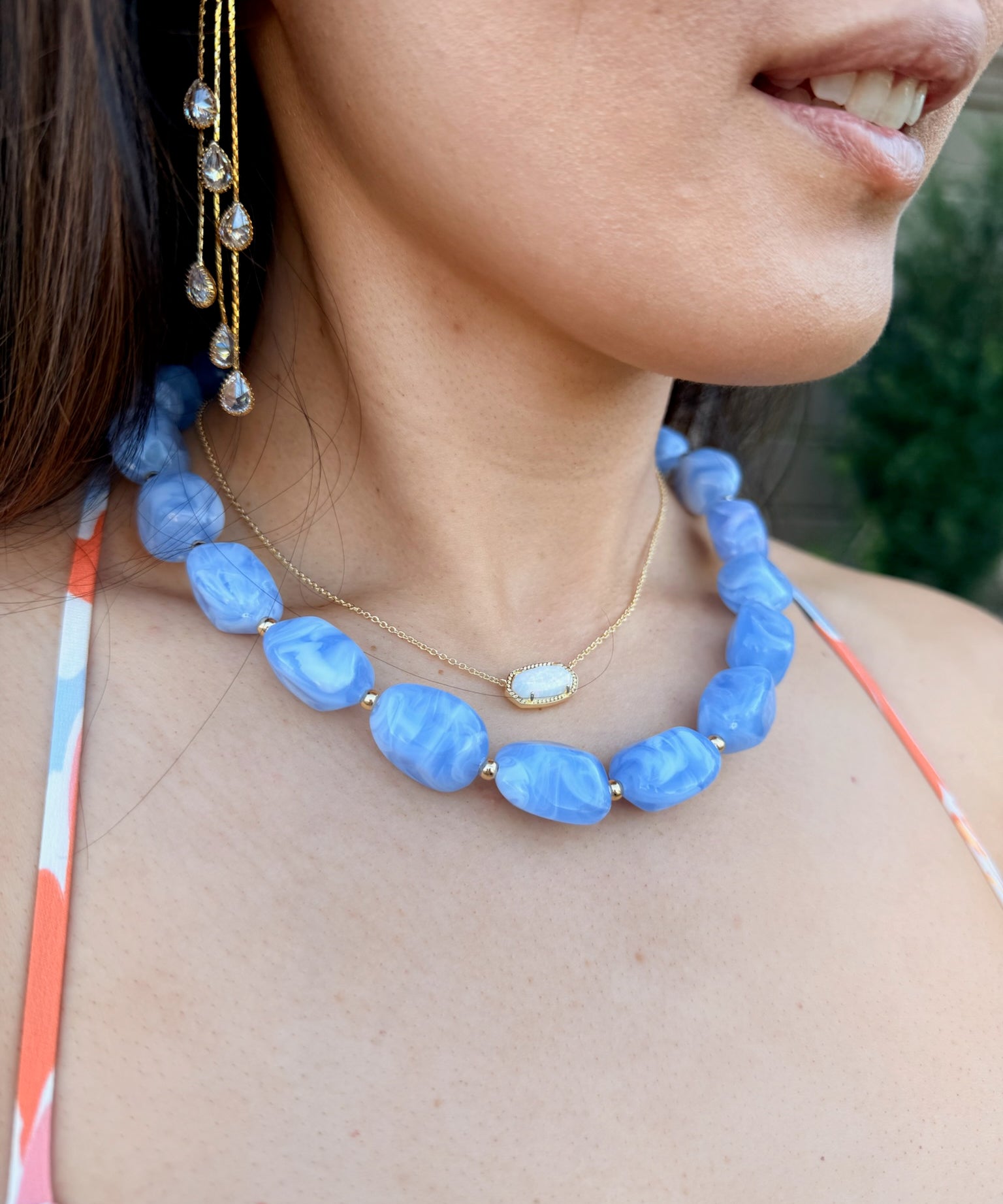 Krista Gold Bow Short Pendant Necklace in White Mix