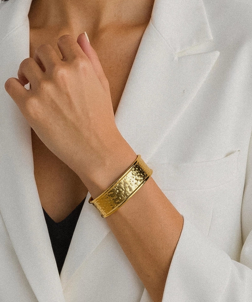 Zavra 18K Gold Hammered Cuff Bracelet