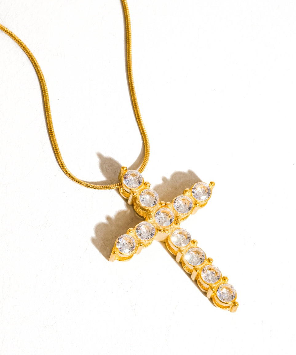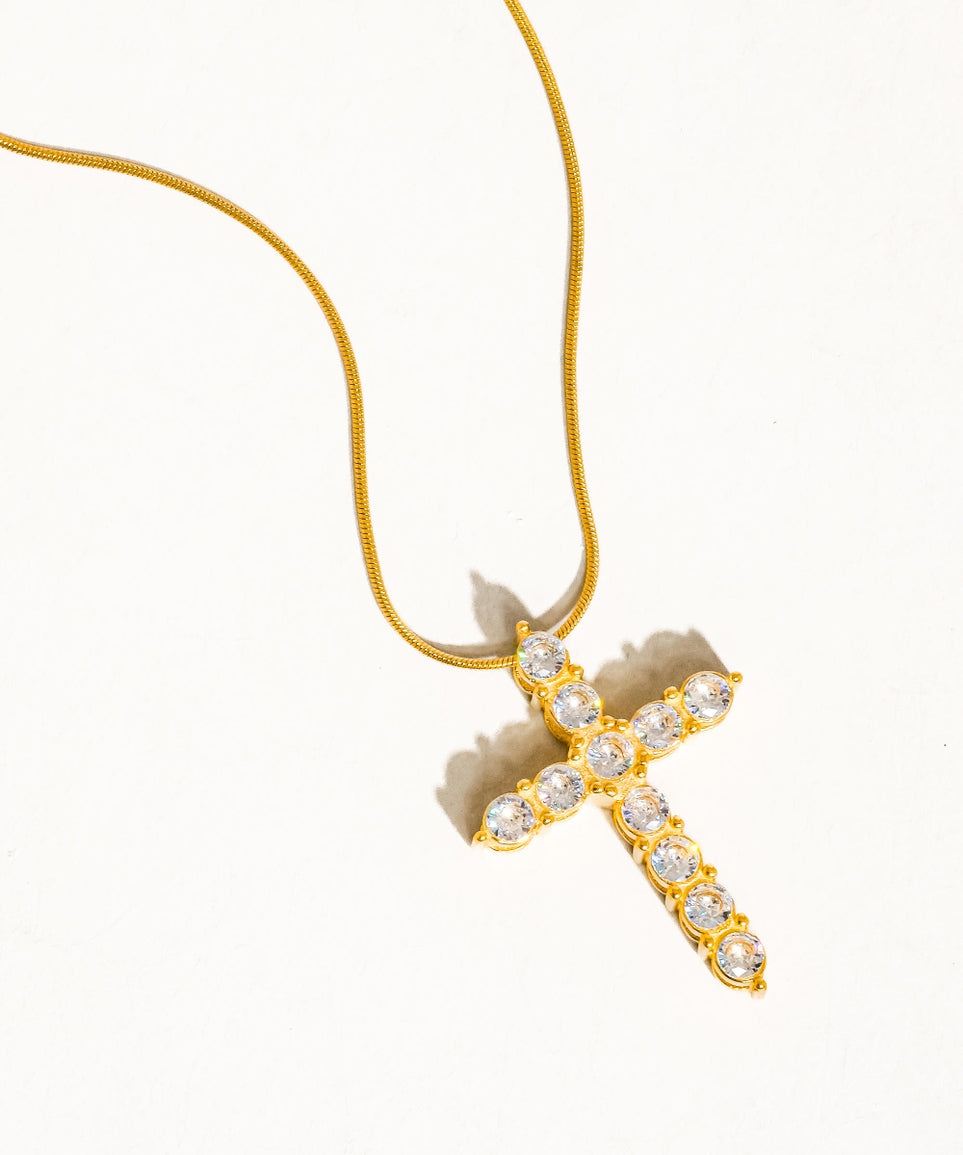 Raeven 18K Gold CZ Cross Necklace