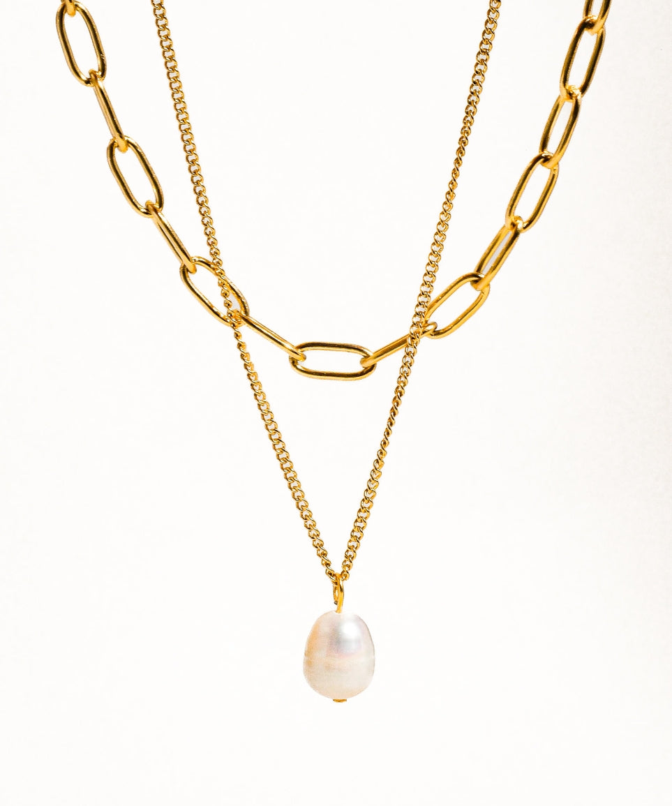 Percy 18K Gold Layered Chain Pearl Necklace