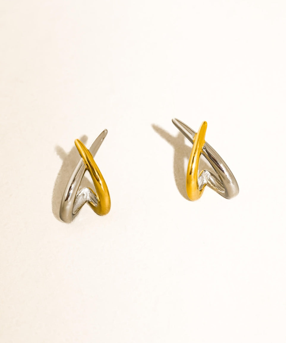 Staven 18K Gold Two-Tone Crossover Earrings