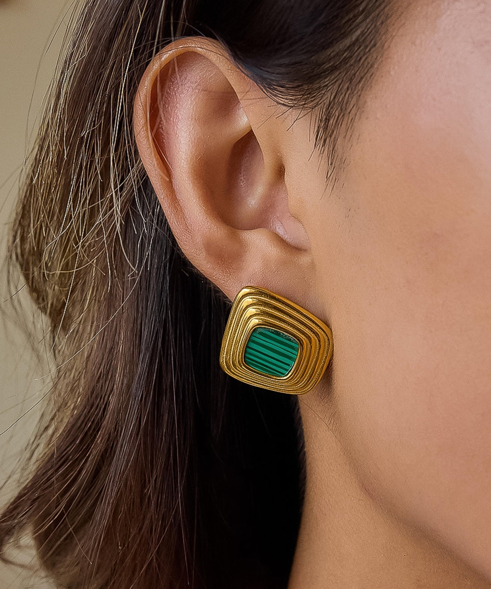 Solenne 18K Gold Enamel Square Earrings - Green