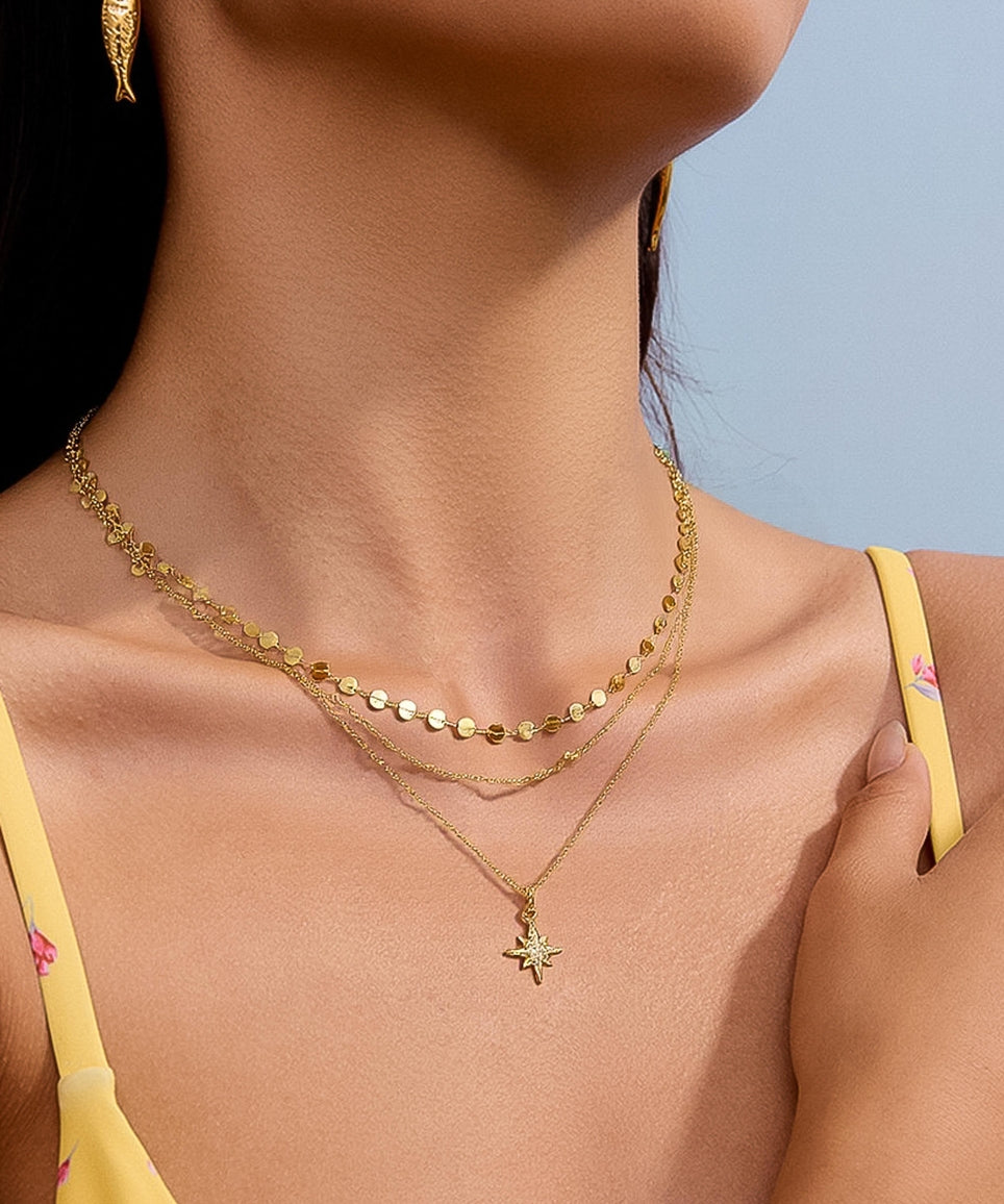 Pascal 18K Layered CZ Star Necklace
