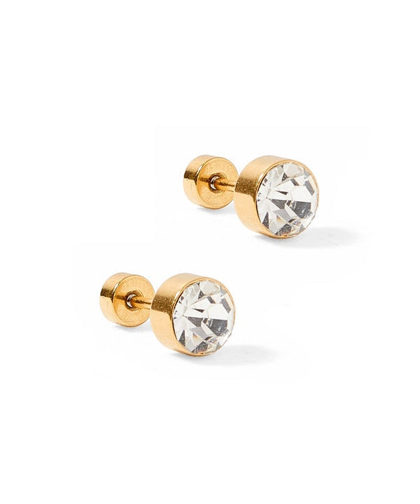 Pave & Roman Numeral Accent Studs - Clear/Gold