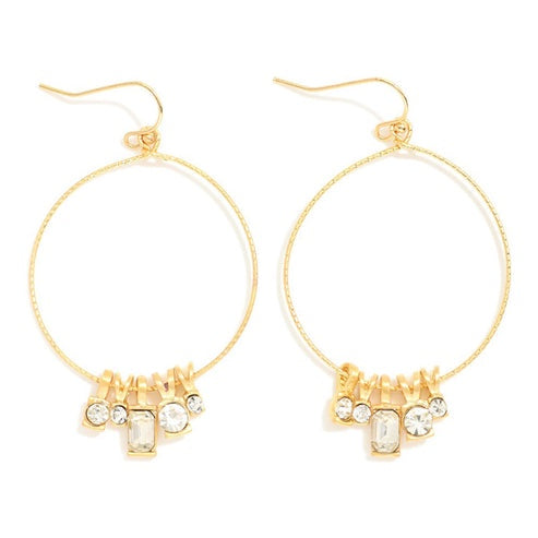 Crystal Glow Gold Hoop Drop Earrings