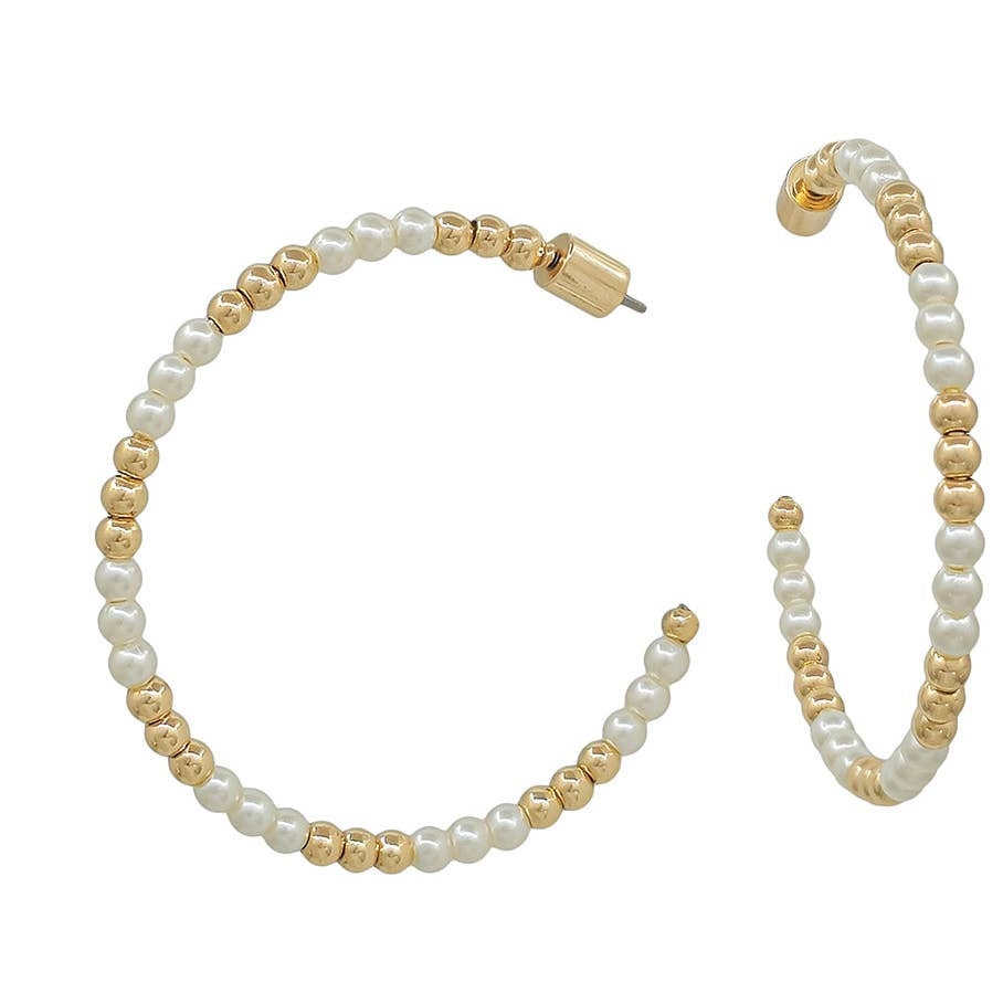 Water Resistant 3MM Pearl and Gold 2" Hoop Earring