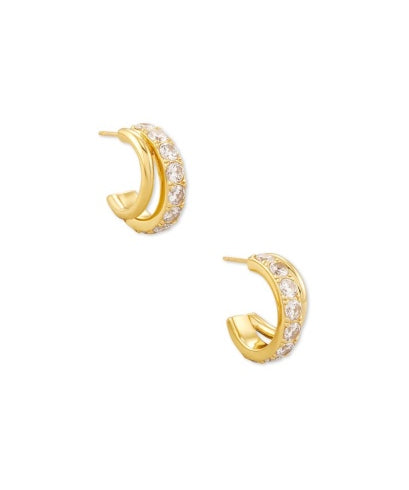 Livy Gold Huggie Earrings in White Crystal