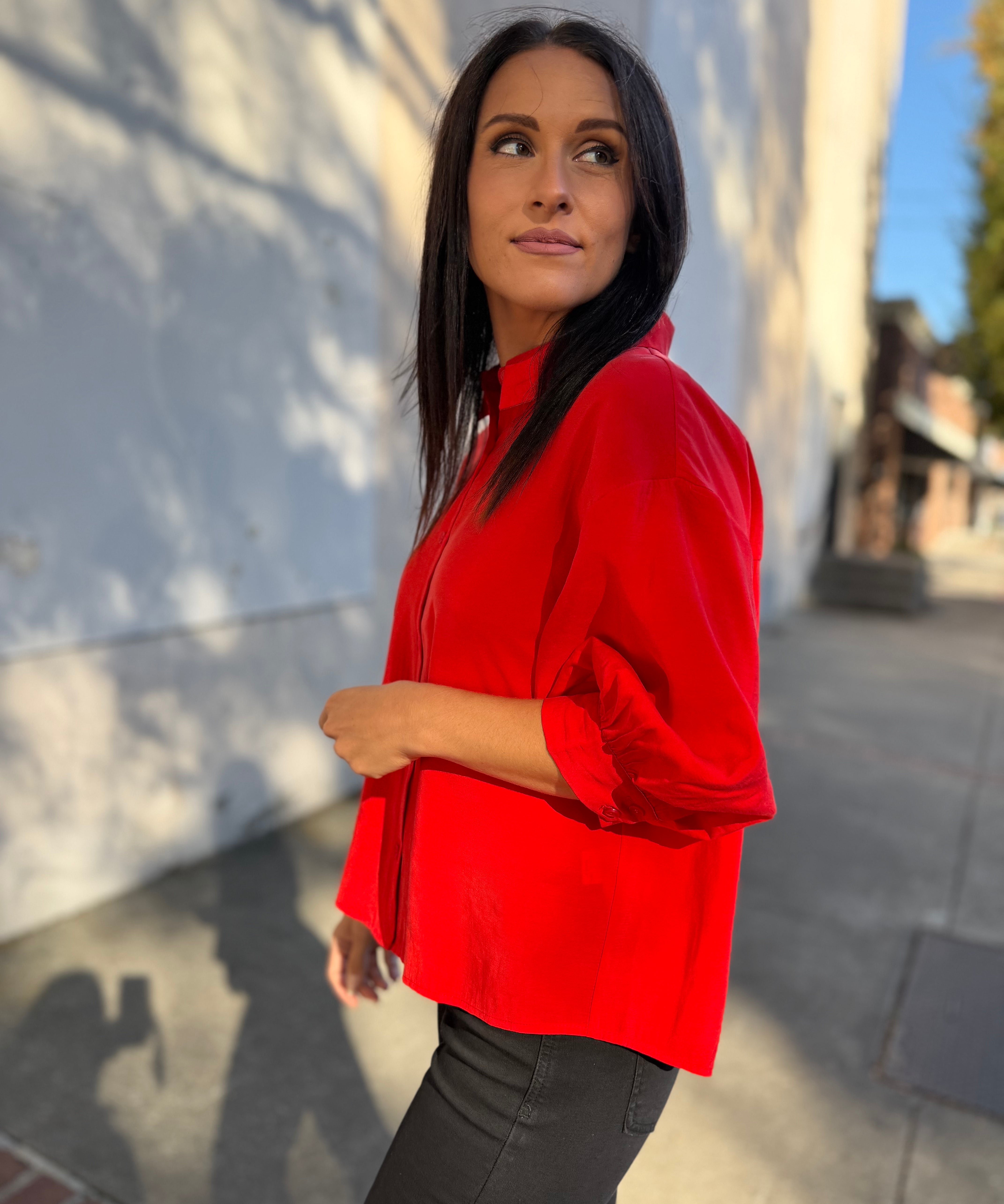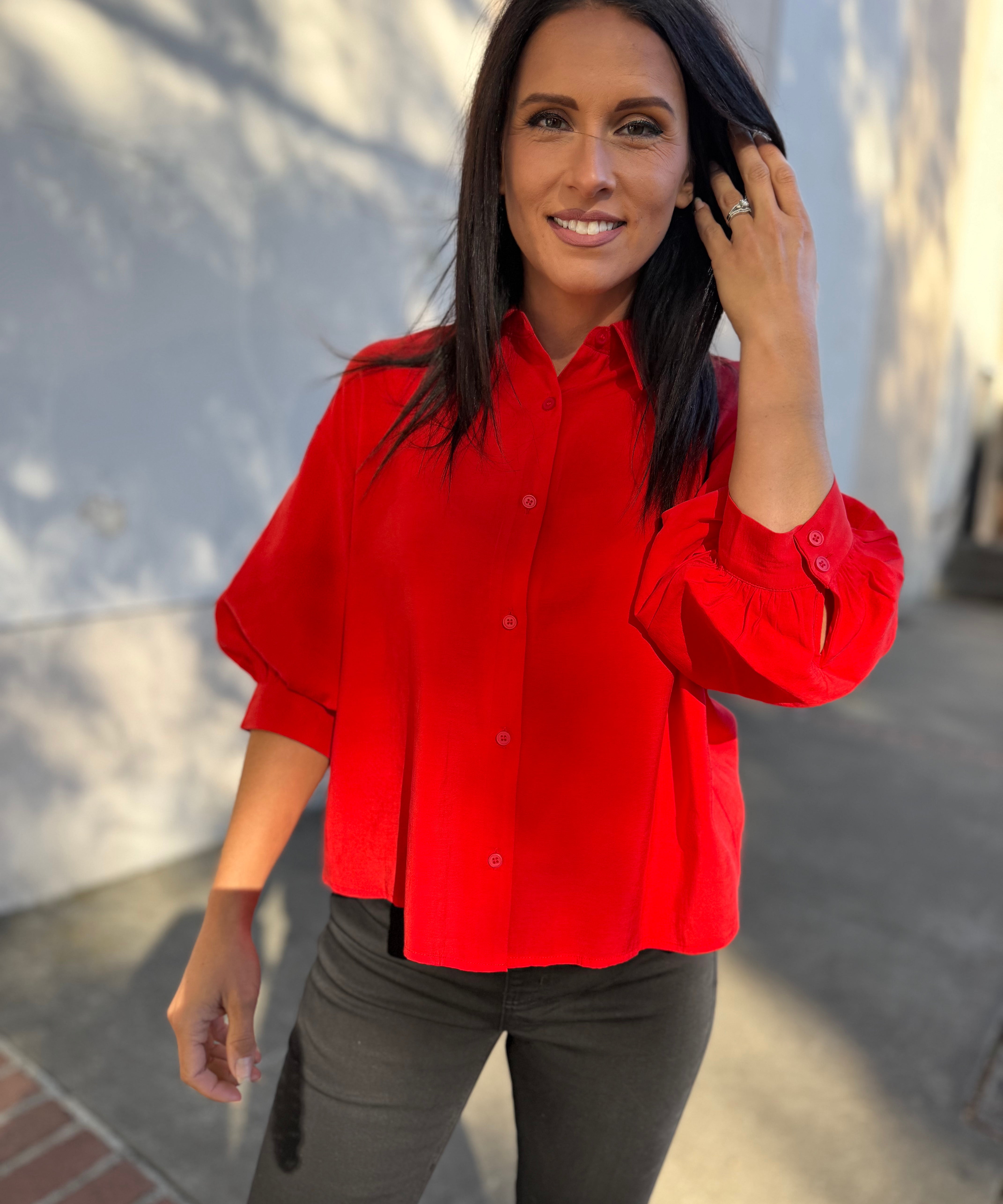 Polished Charm Puff Sleeve Shirt - Candy Red