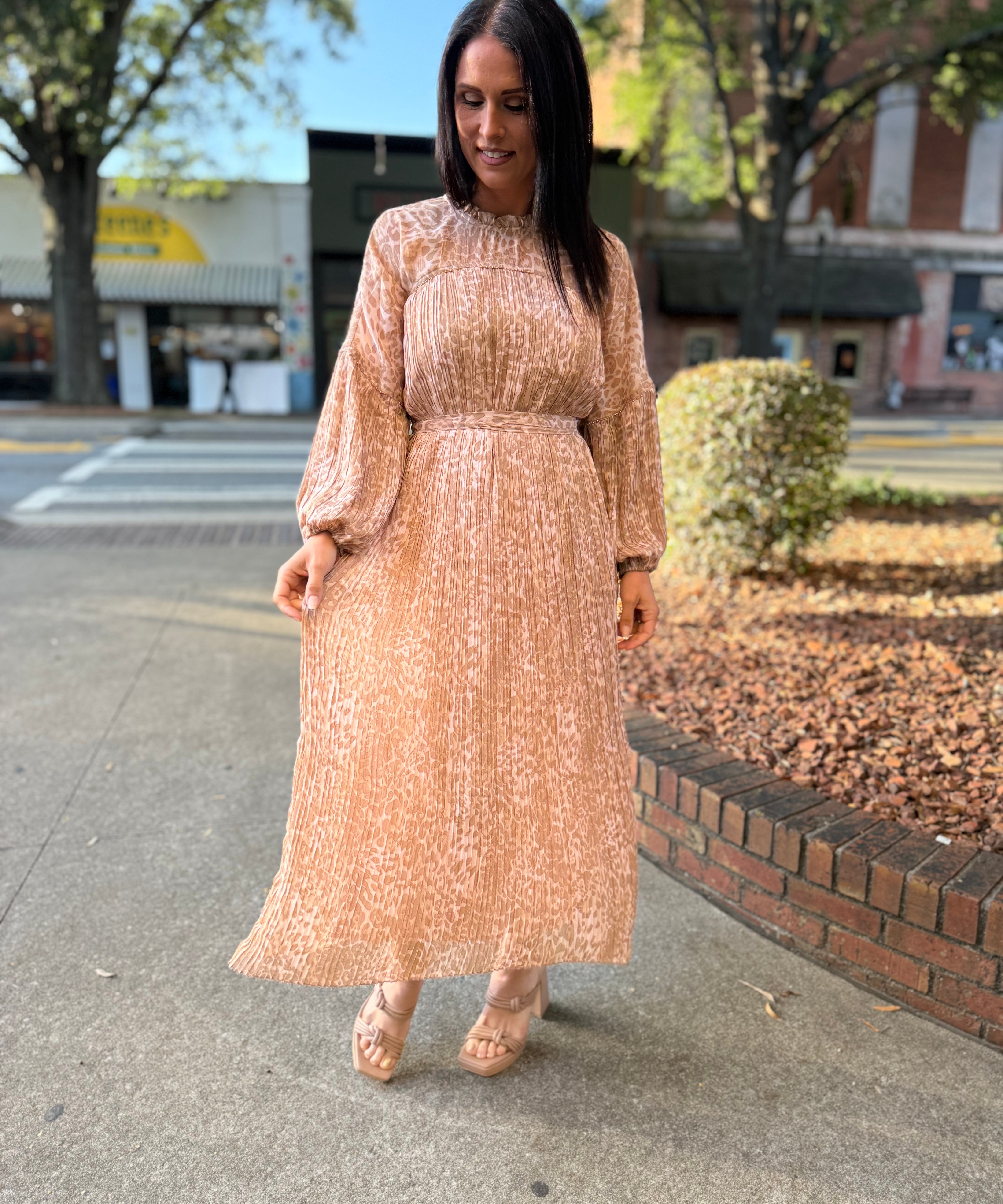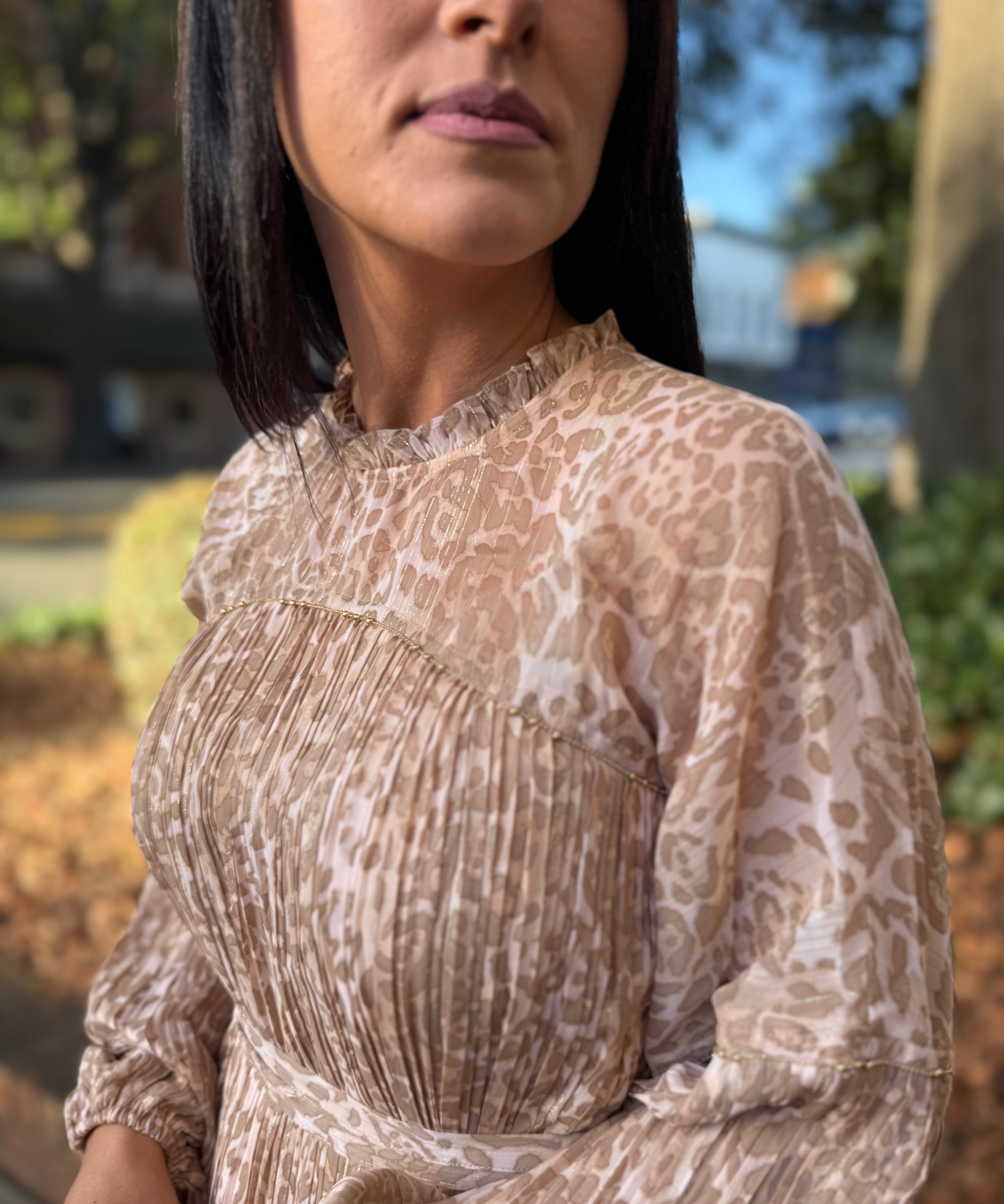 Blush Multi Animal Print Chiffon with Lurex Pleated Dress