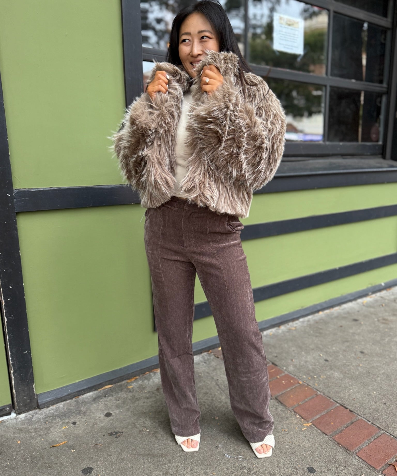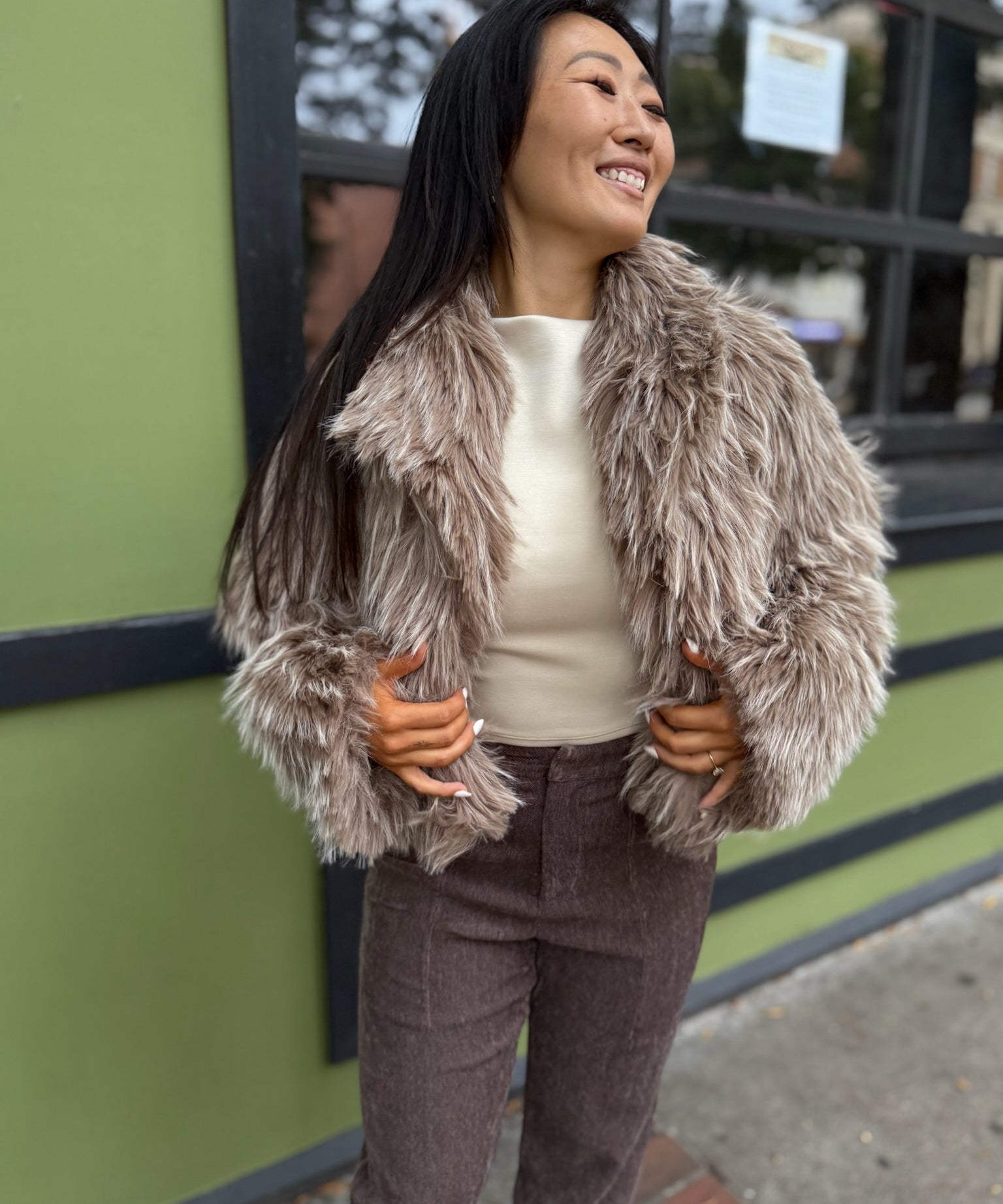 Taupe Ladylike Energy Two Tone Faux Fur Jacket