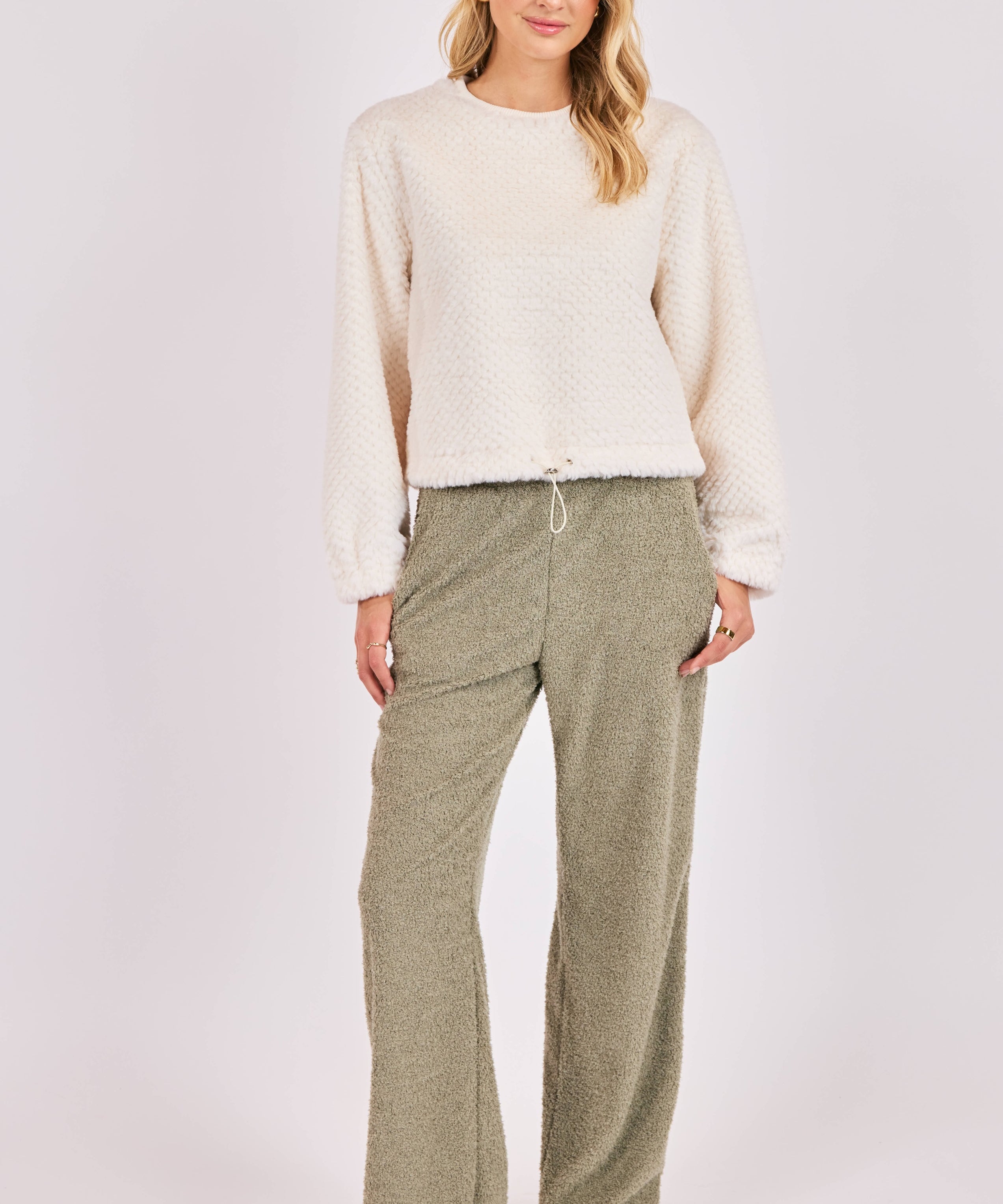 Ivory Shoulda Been Fuzzy Adjustable Hem Knit Top