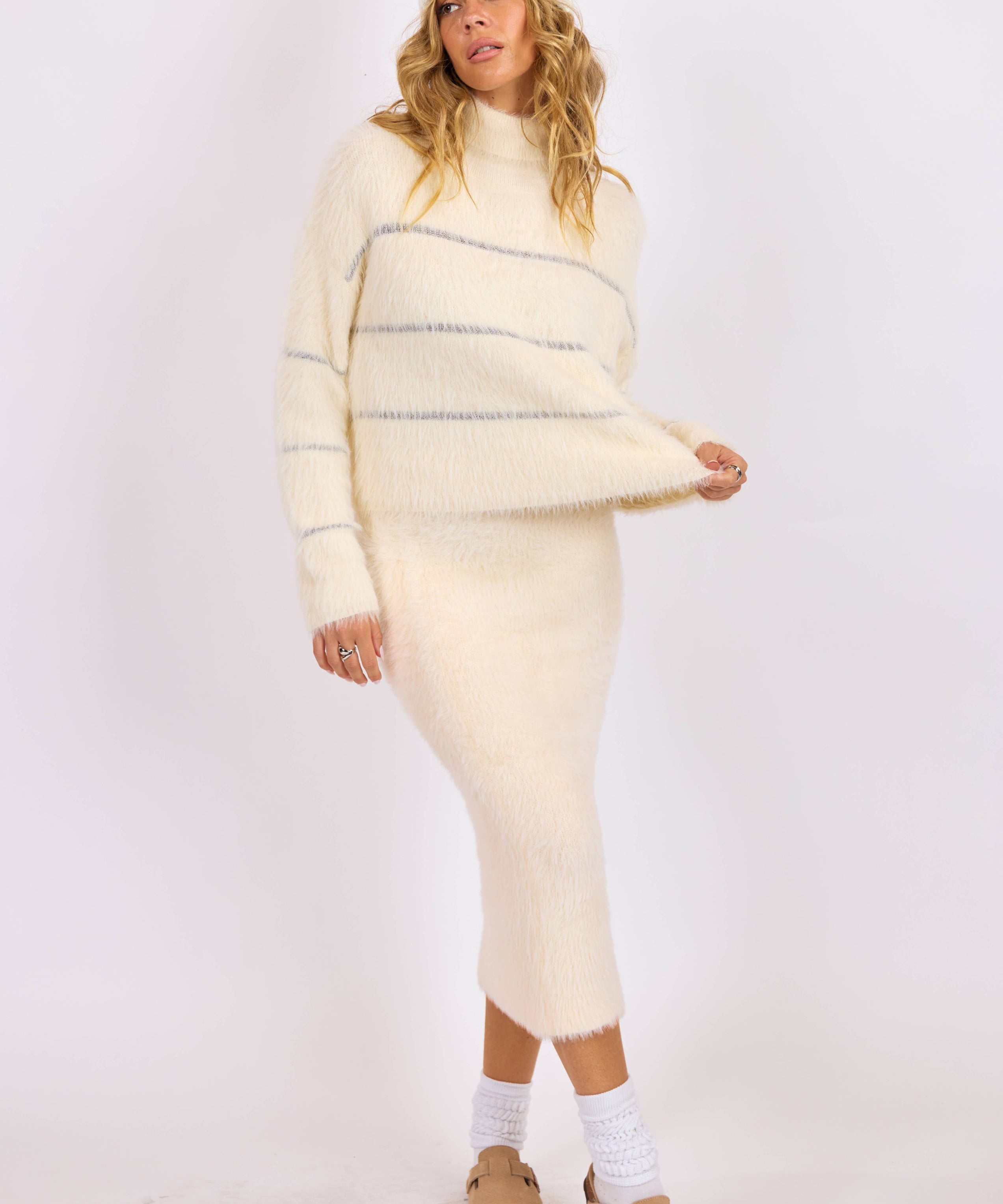 Ivory Silver Martini Metallic Stripe Turtleneck Sweater