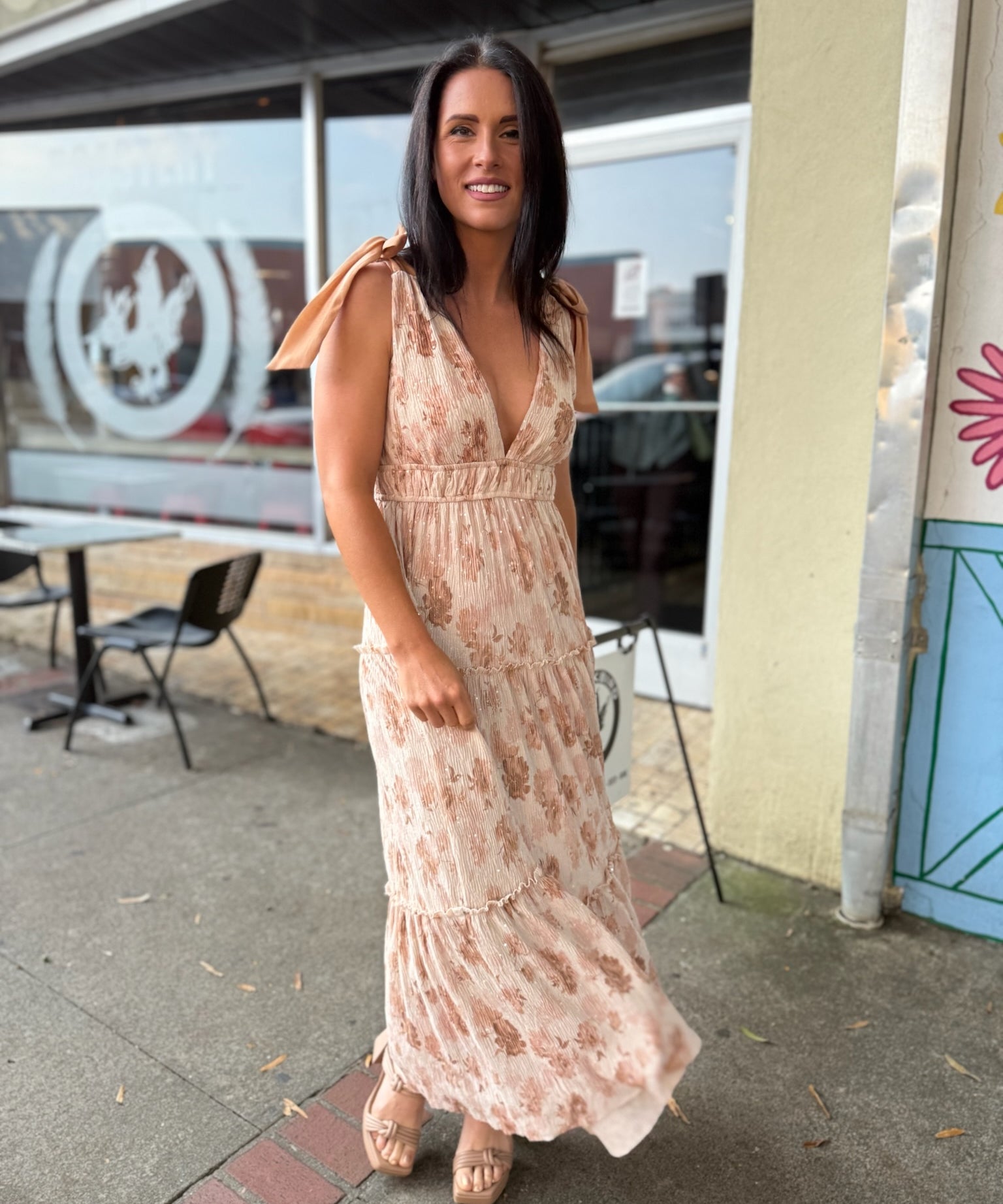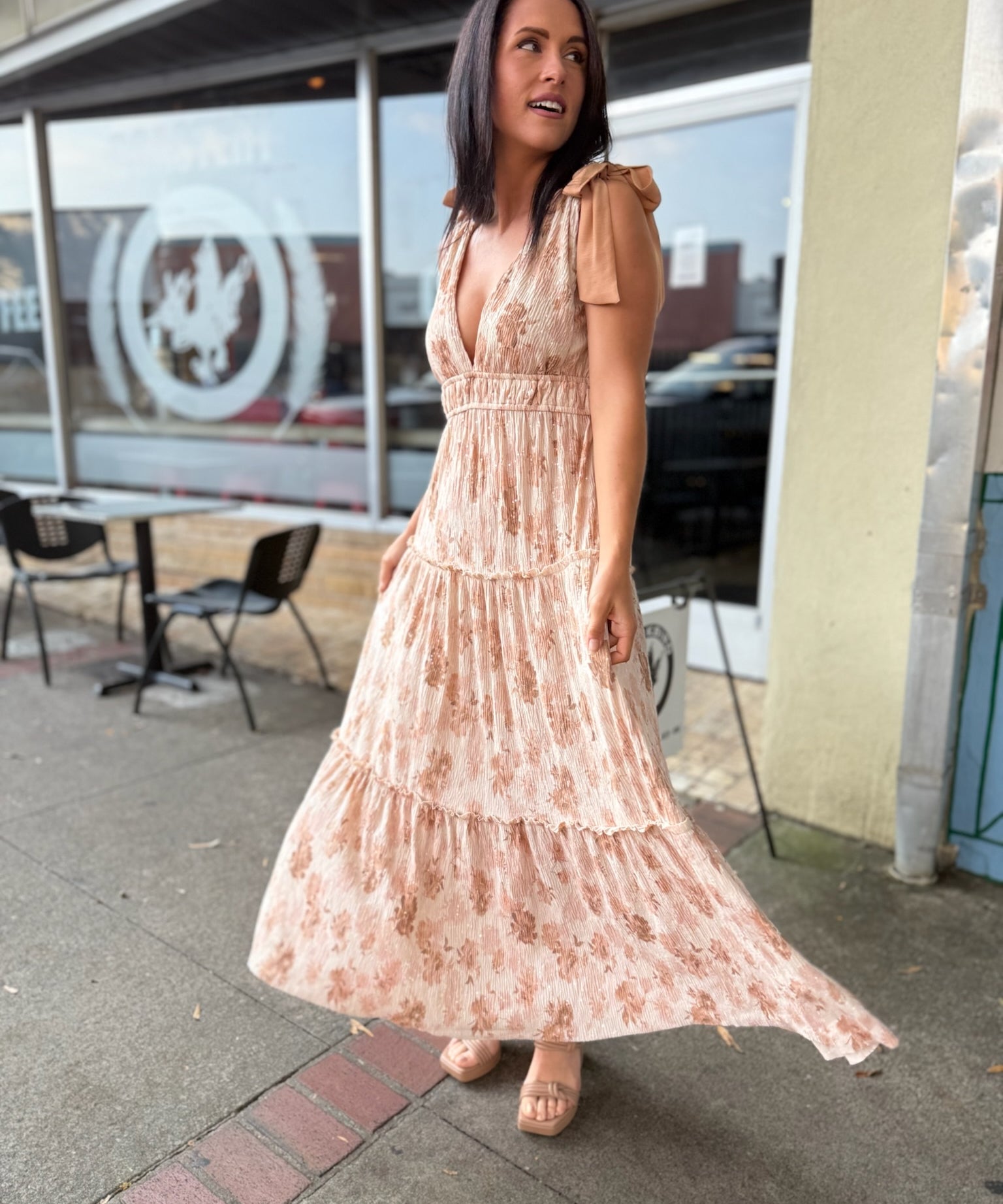 Beige/Apricot Floral Mini Sequins Maxi Dress