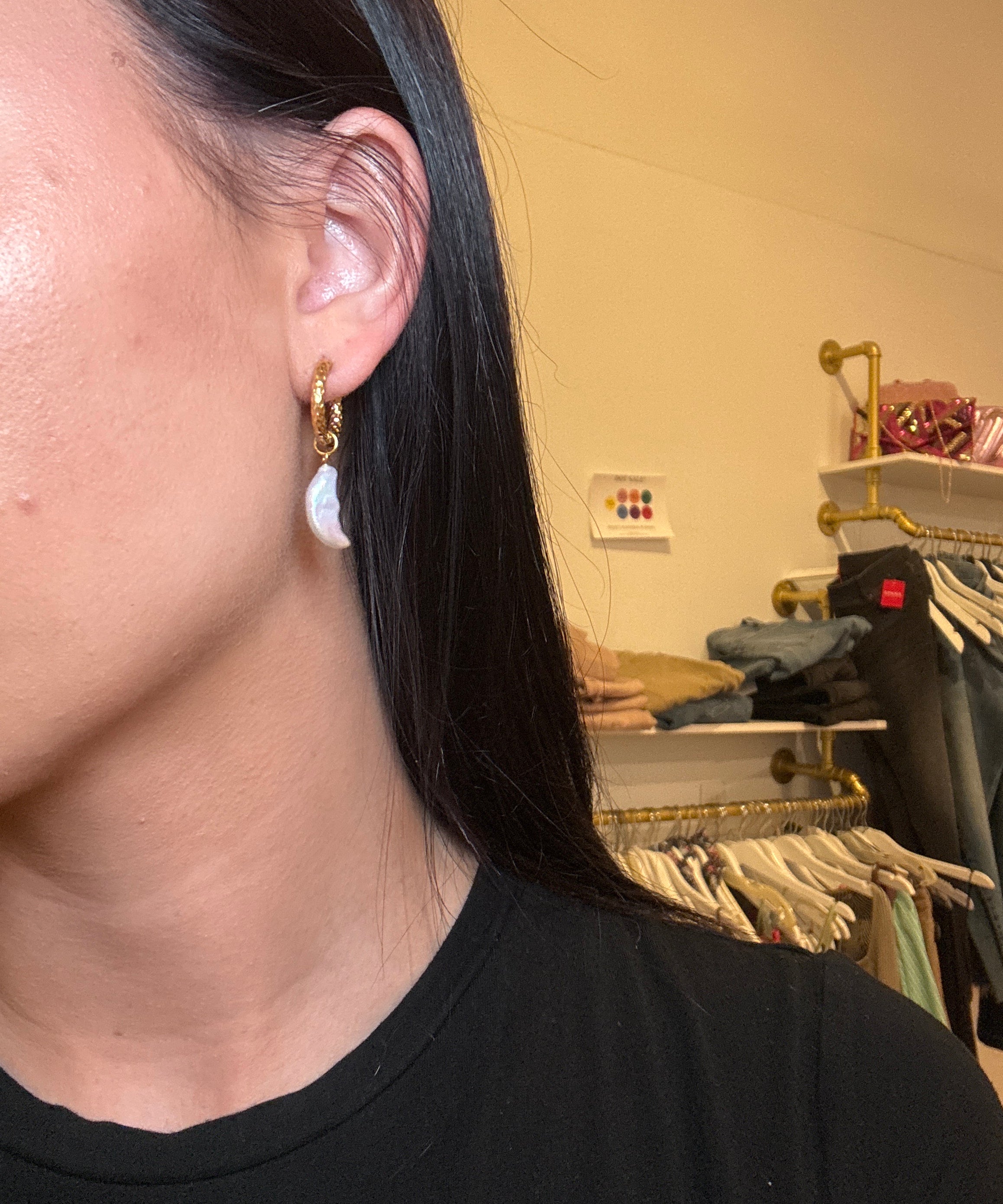 Gold Mini Baguette Clear Cz Round Pearl Ring