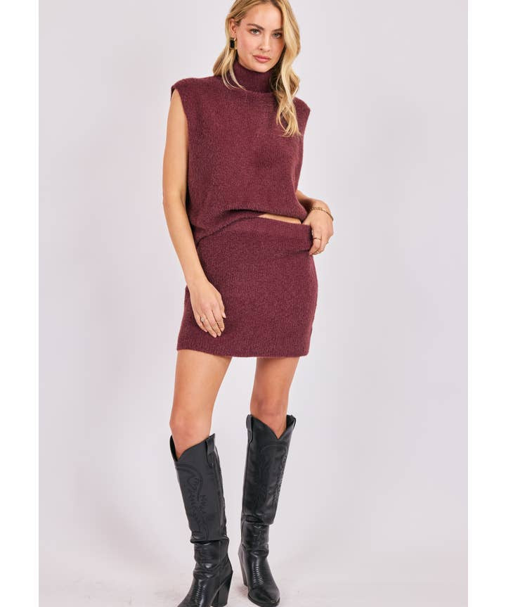 Burgundy Crosby Fuzzy Mini Skirt