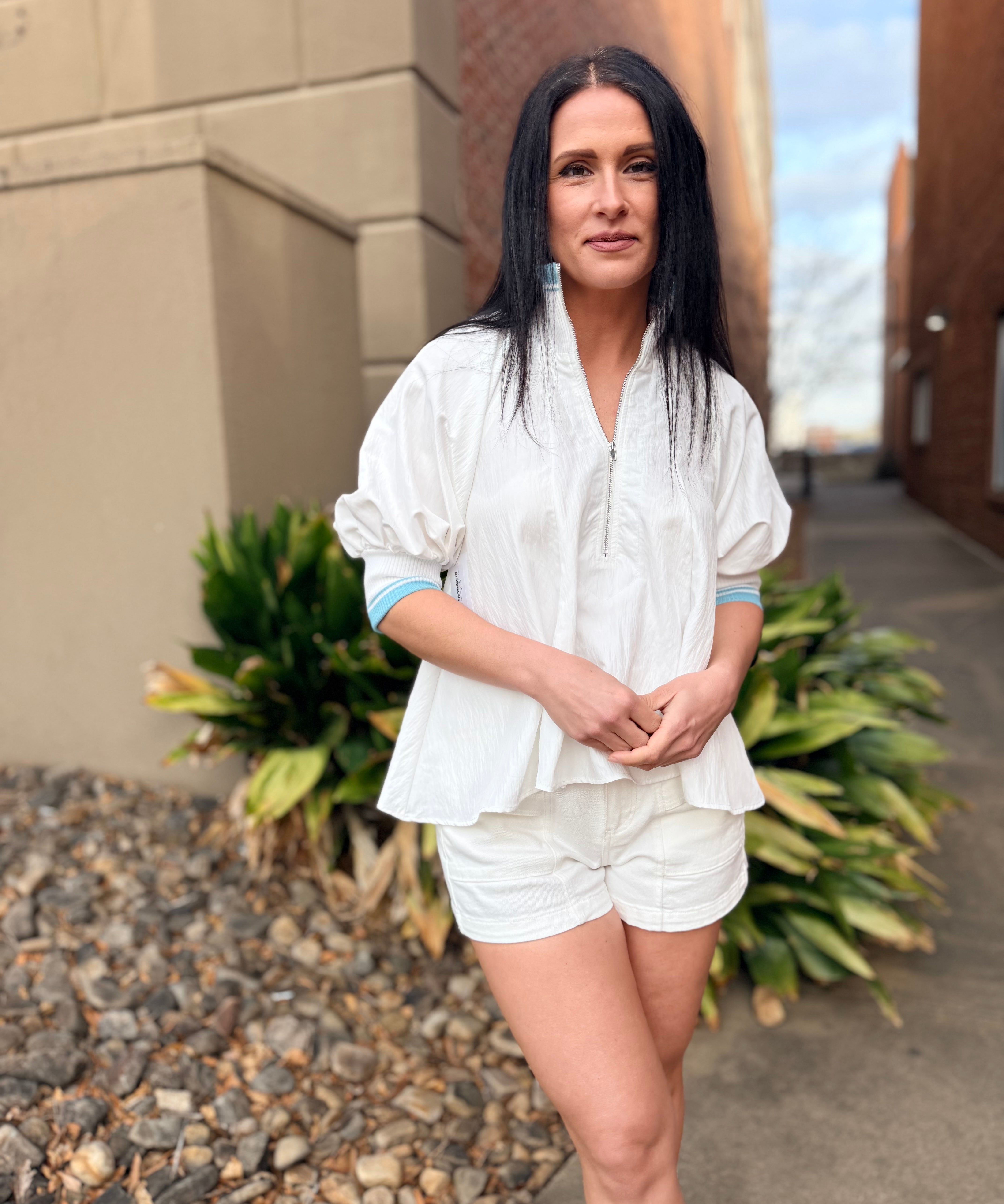 Off White Cotton Linen Mix Square Neckline Loop Trim Midi Dress