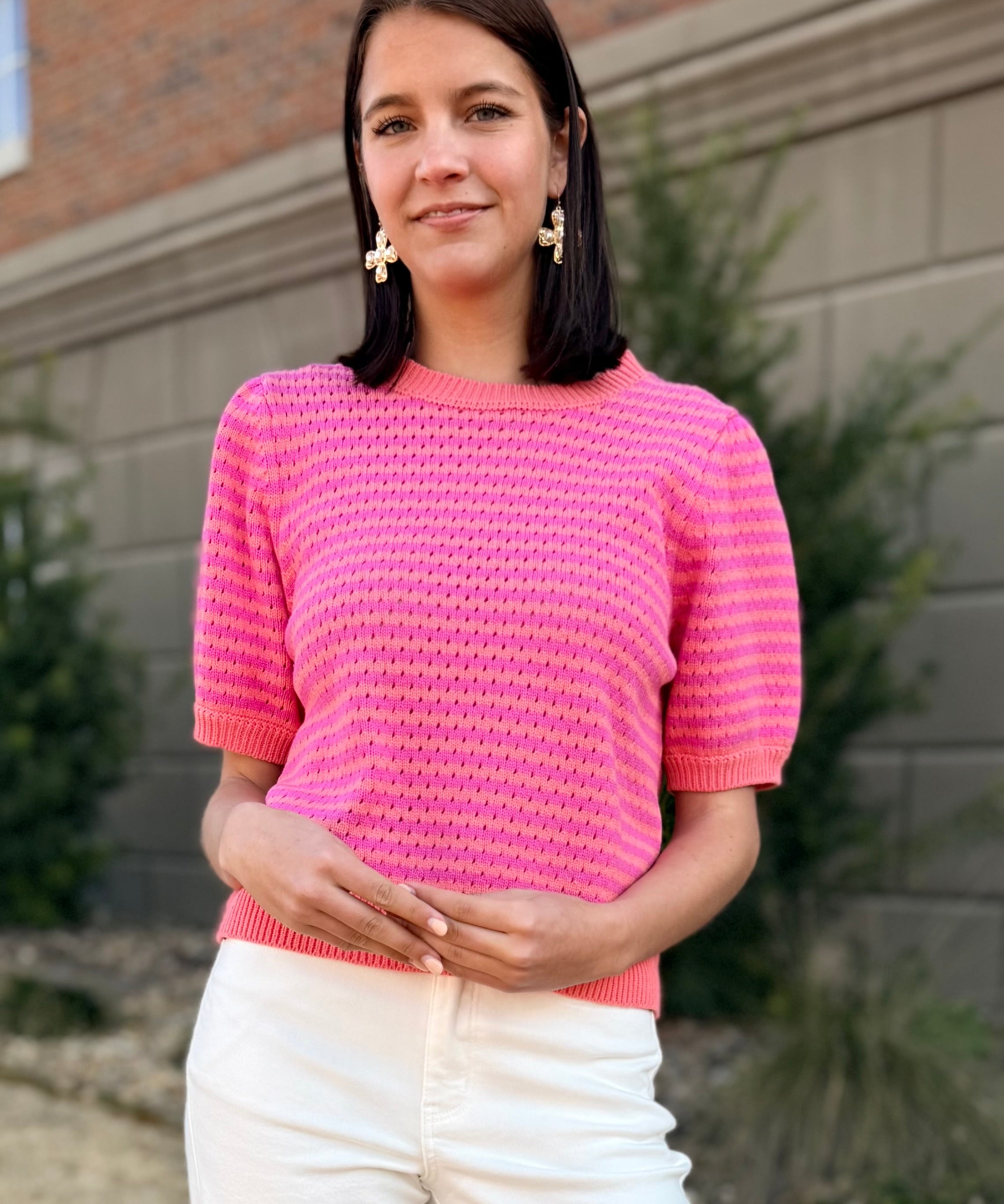 Colorblock Textured Striped Knit Top