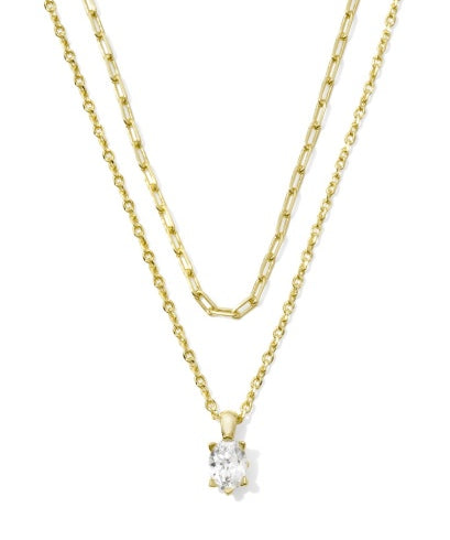 Cailin Multi Strand Necklace Gold with White Crystal