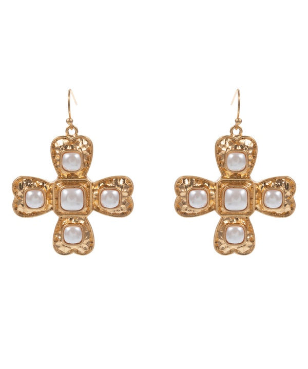 Textured Cross Earrings - Gold