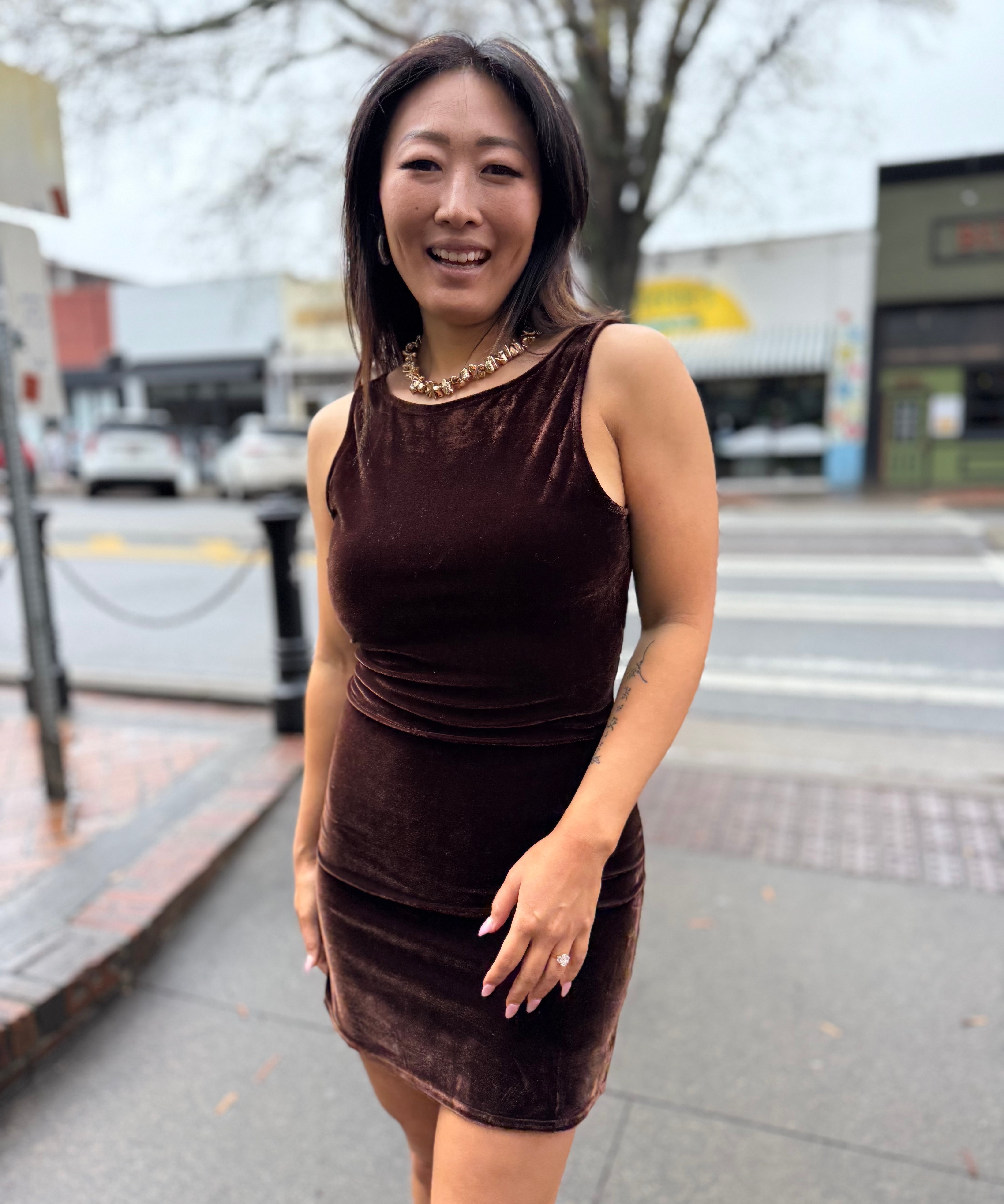 Chocolate Midnight Oil Velvet Boat Neck Dress