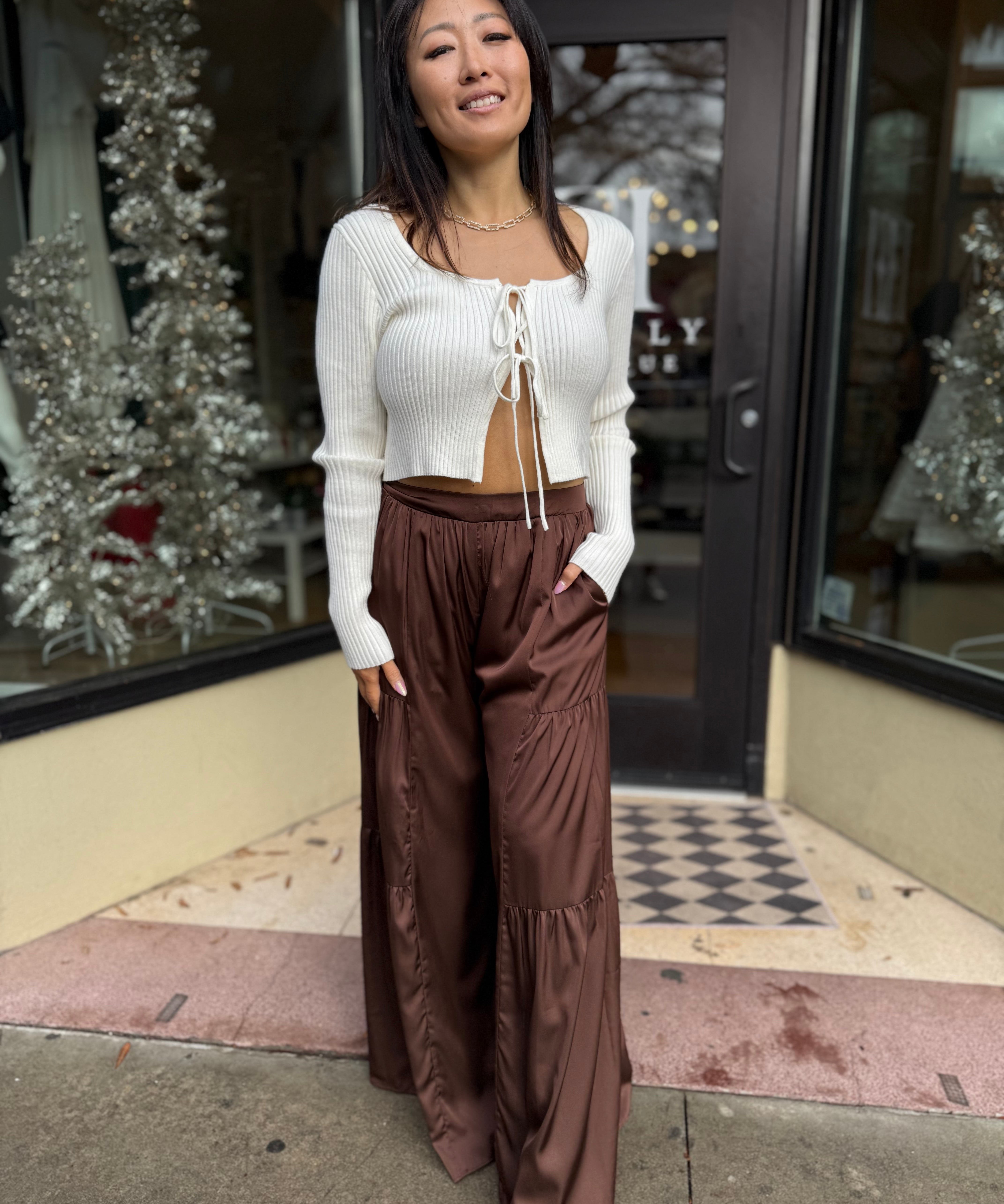 Cream Bow Tied Ribbed Knit Cardigan And Mini Skirt