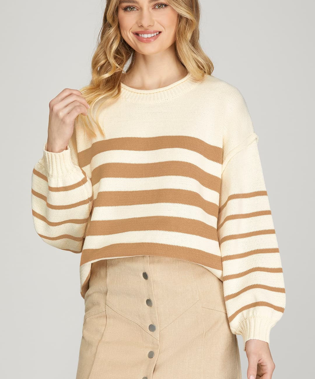 Dark Taupe/Cream Striped Charm Sweater Top