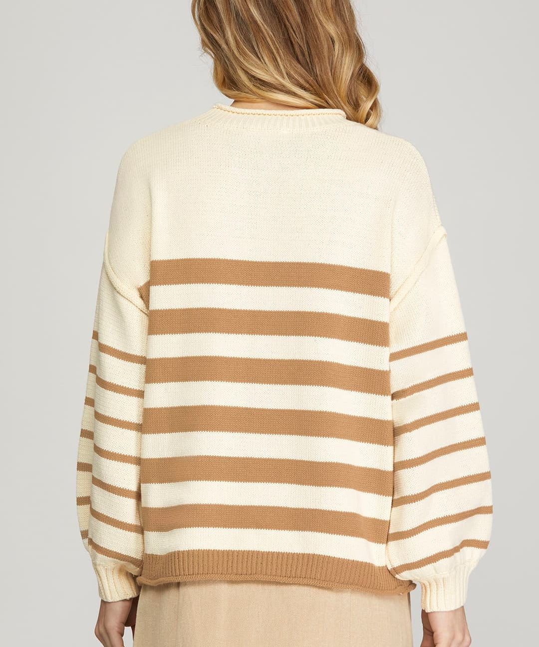Long Sleeve Striped Sweater Top - Taupe