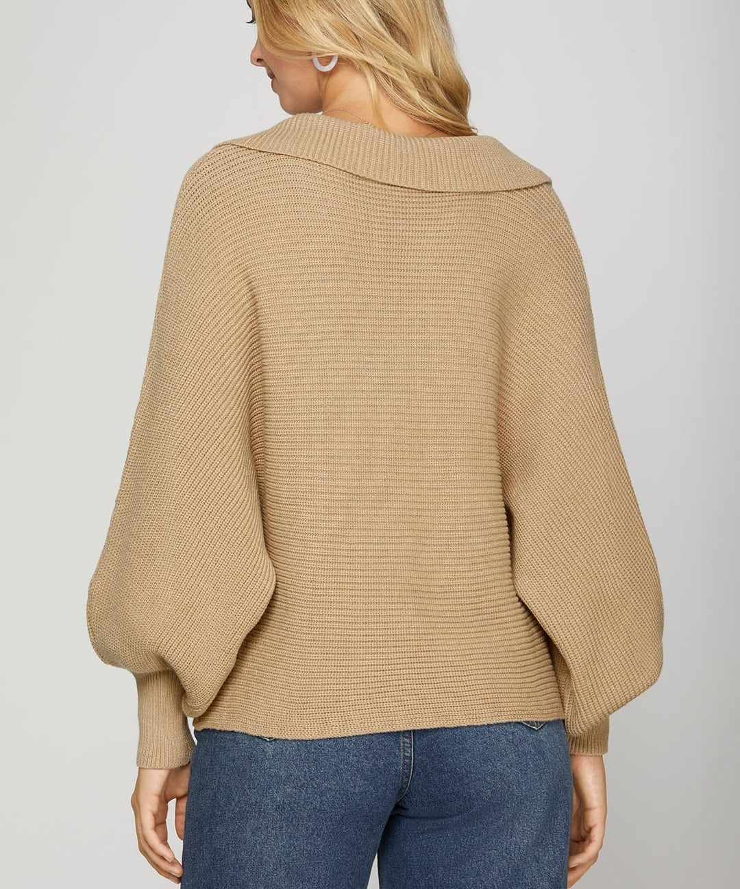 Collared Dolman Sleeve Ribbed Sweater - Taupe