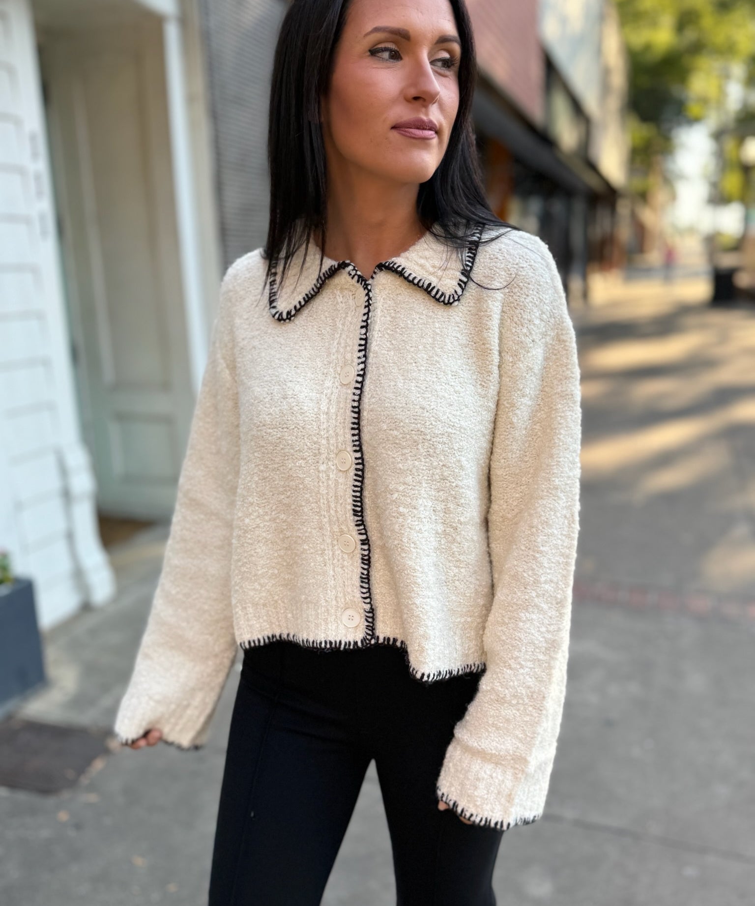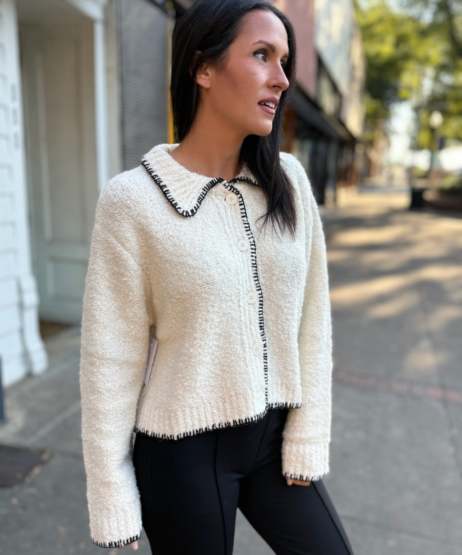 Vintage-Inspired Cream Knit Tie-Front Cardigan