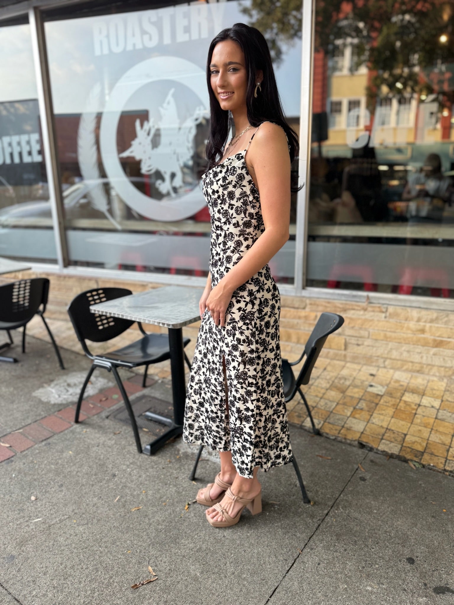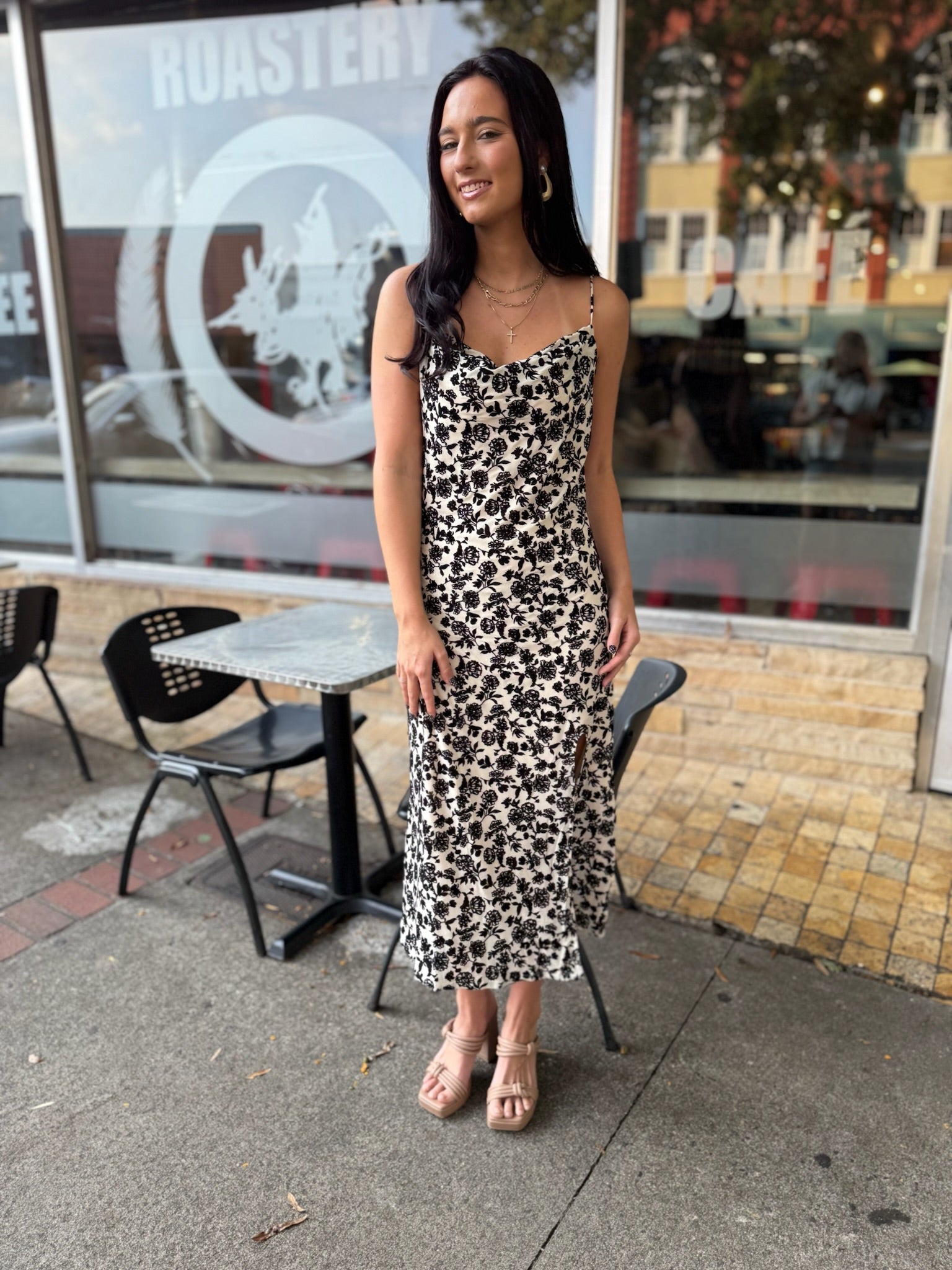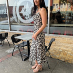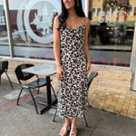 Turn heads in this sleek leopard-print midi dress, featuring delicate spaghetti straps and a flattering sweetheart neckline. Designed with a sultry thigh-high slit, this dress brings the perfect balance of bold and feminine. Lightweight and easy to wear, it’s a versatile piece that transitions effortlessly from daytime chic to night-out glam.