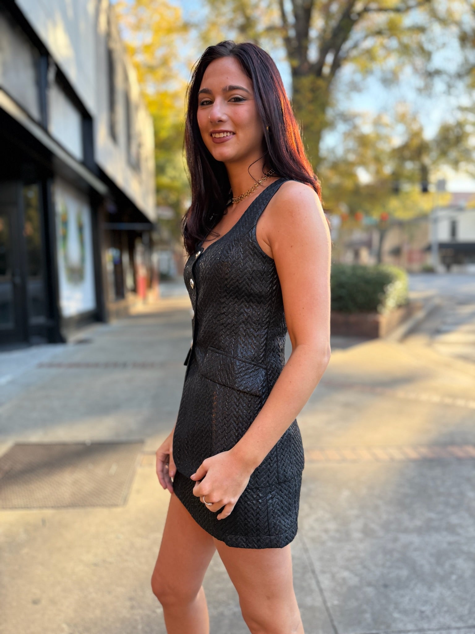 Make every moment shine with the Angeline Party Jacquard Black Romper. Designed with a luxe jacquard texture and a sleek black finish, this romper brings modern glamour to any celebration. Its tailored fit and playful silhouette create a chic, confident look perfect for cocktail parties, night outs, or festive occasions. Pair it with statement heels and sparkling accessories for an unforgettable, fashion-forward ensemble.