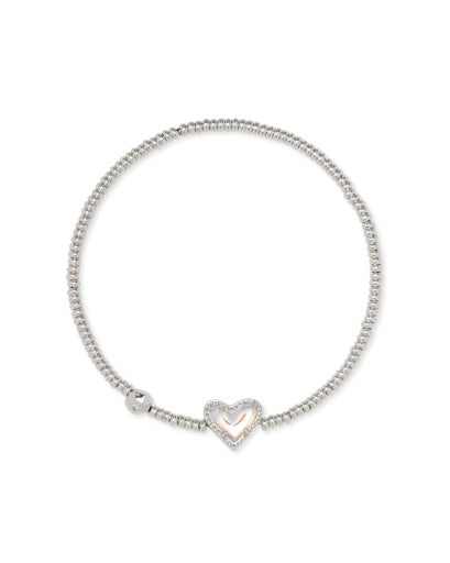 Ari Heart Silver Stretch Bracelet in Dichroic Glass