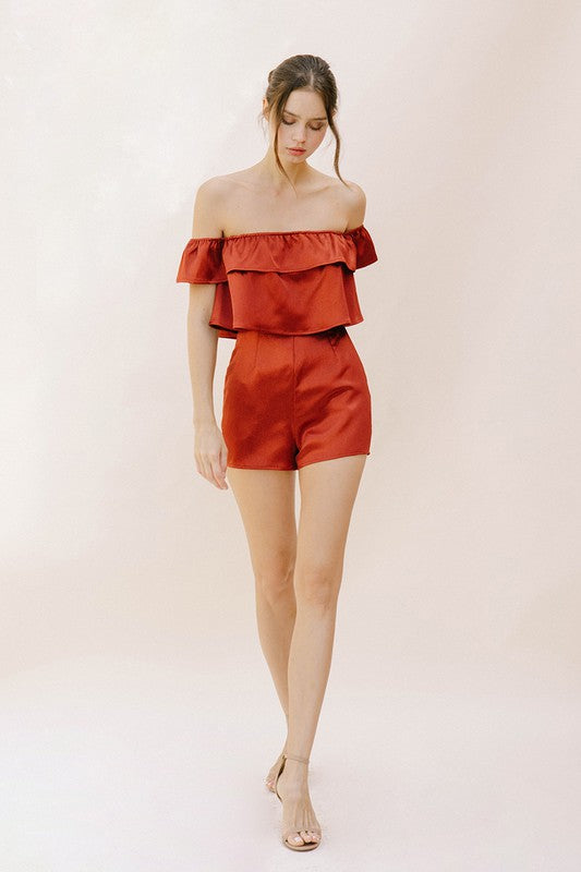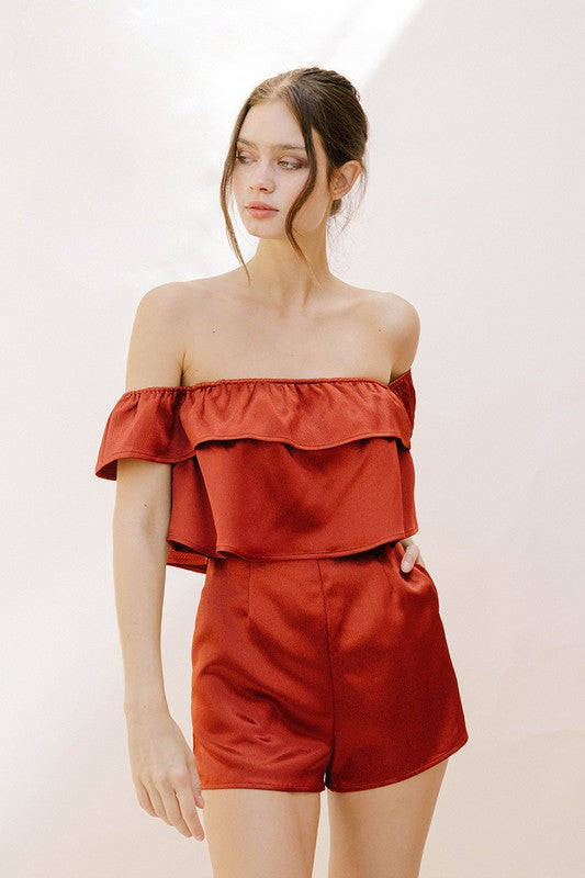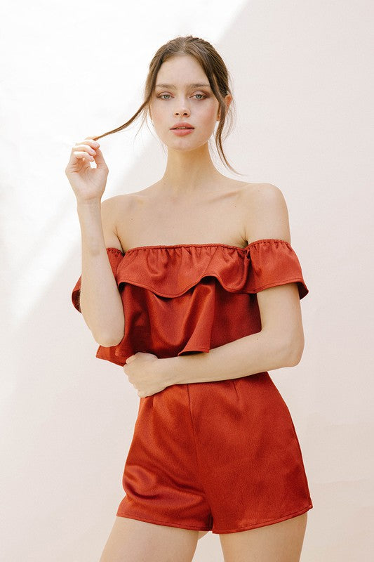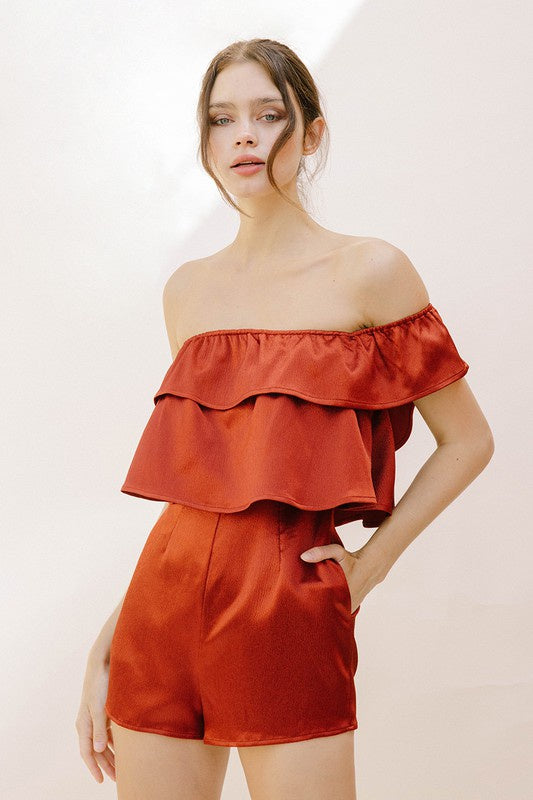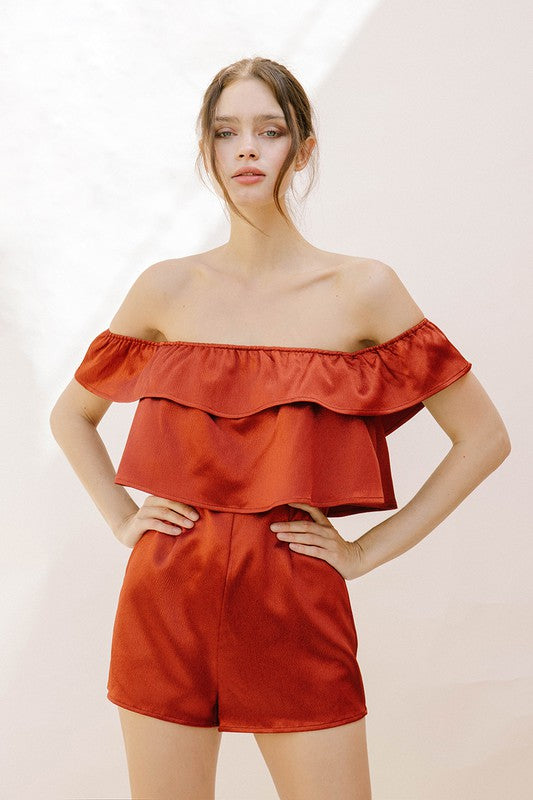It exhibits flounced tiered layered ruffles, and cold shoulders top.