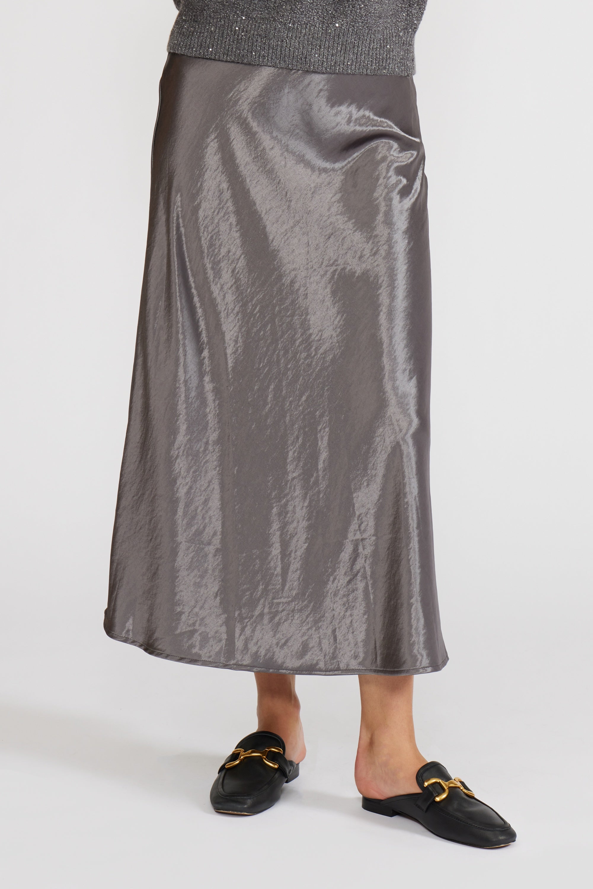 Elevate your wardrobe with the Barbara Satin Skirt in Pewter—the ultimate blend of elegance and edge! This sleek, silky satin skirt drapes beautifully and catches the light with every step, giving you that effortless luxe look. The pewter hue is a versatile neutral that pairs perfectly with everything from bold prints to cozy knits. Dress it up with heels for a night out or keep it casual with sneakers and a tee. However you style it, the Barbara Skirt is your go-to for polished perfection!