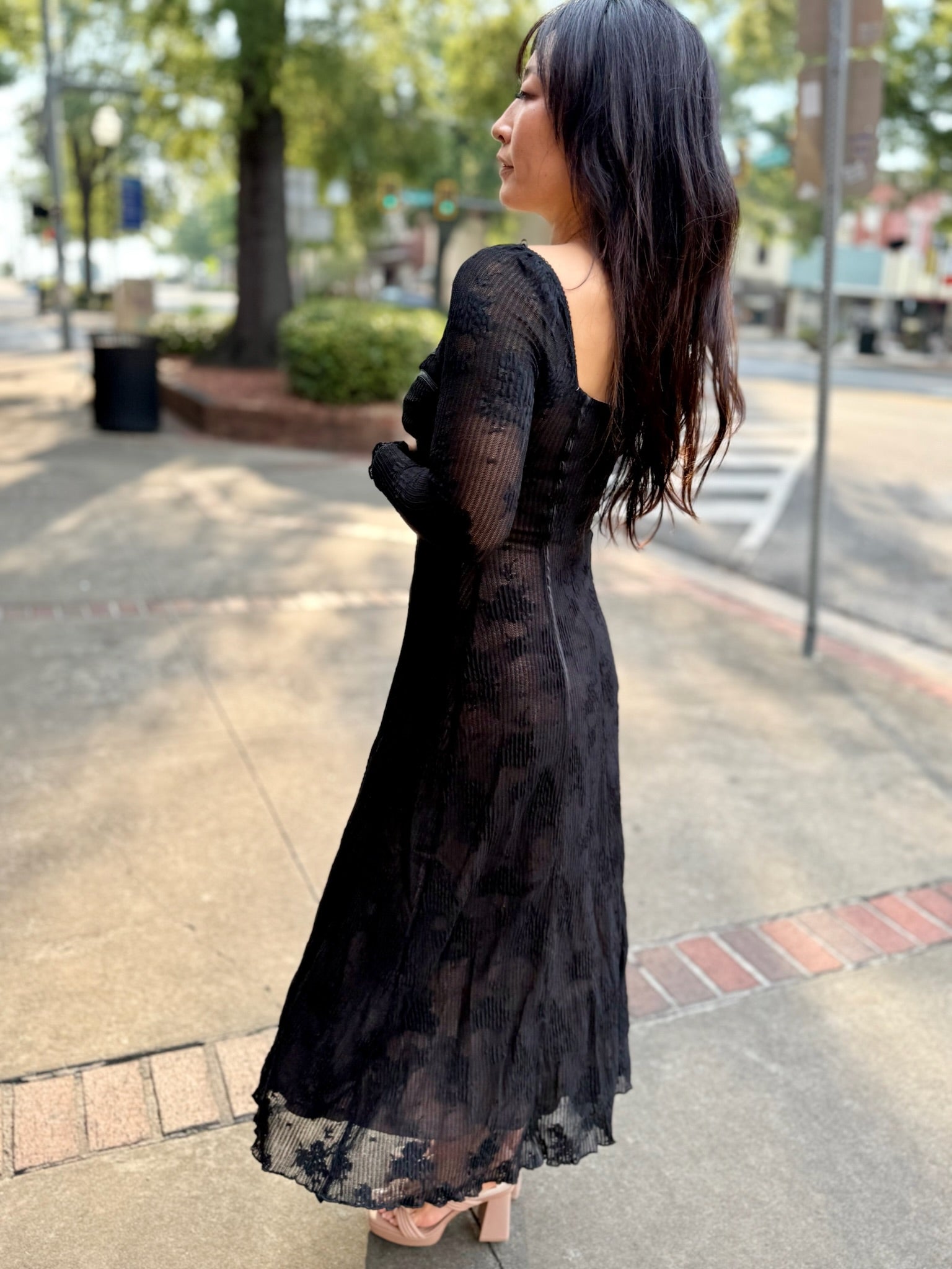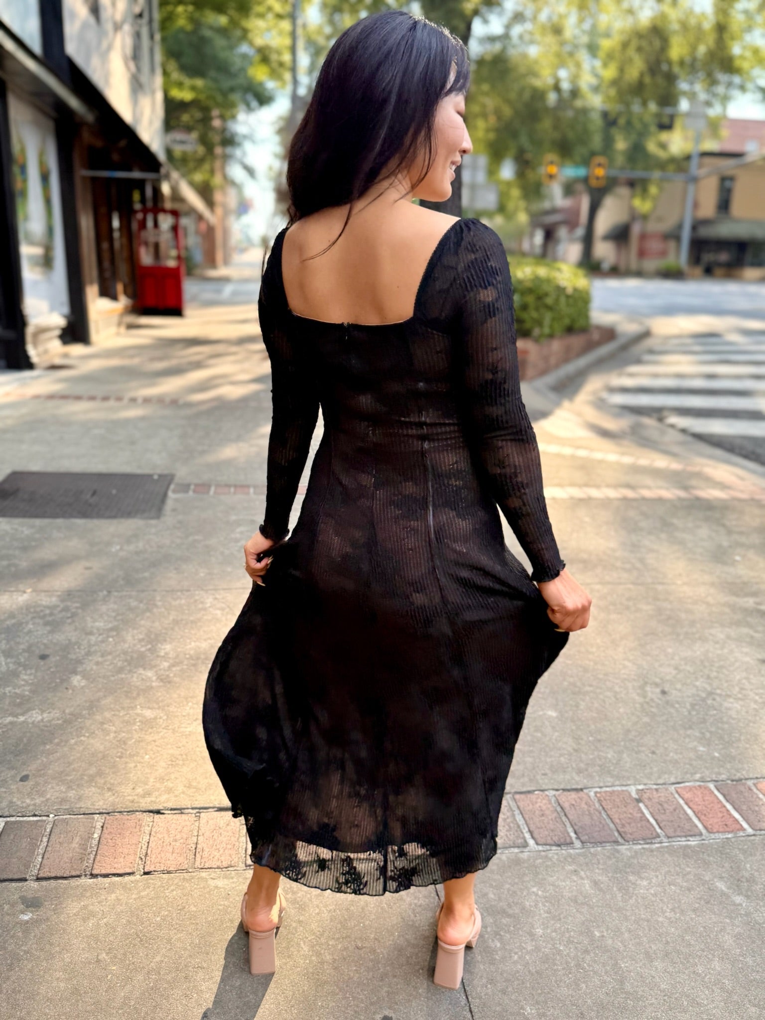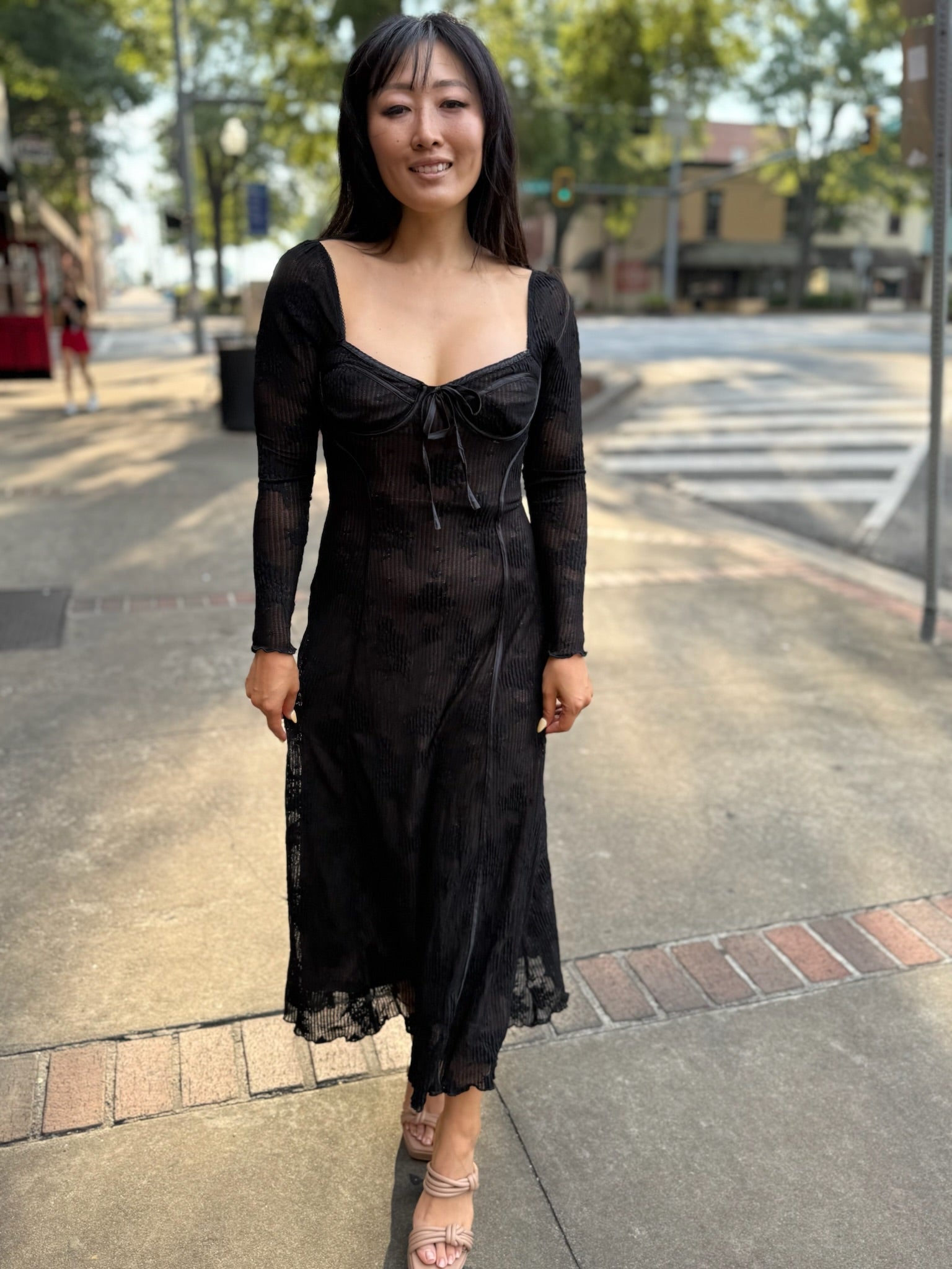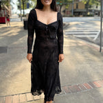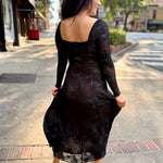 Black Sweetheart Neck Long Sleeve Lace Midi Dress