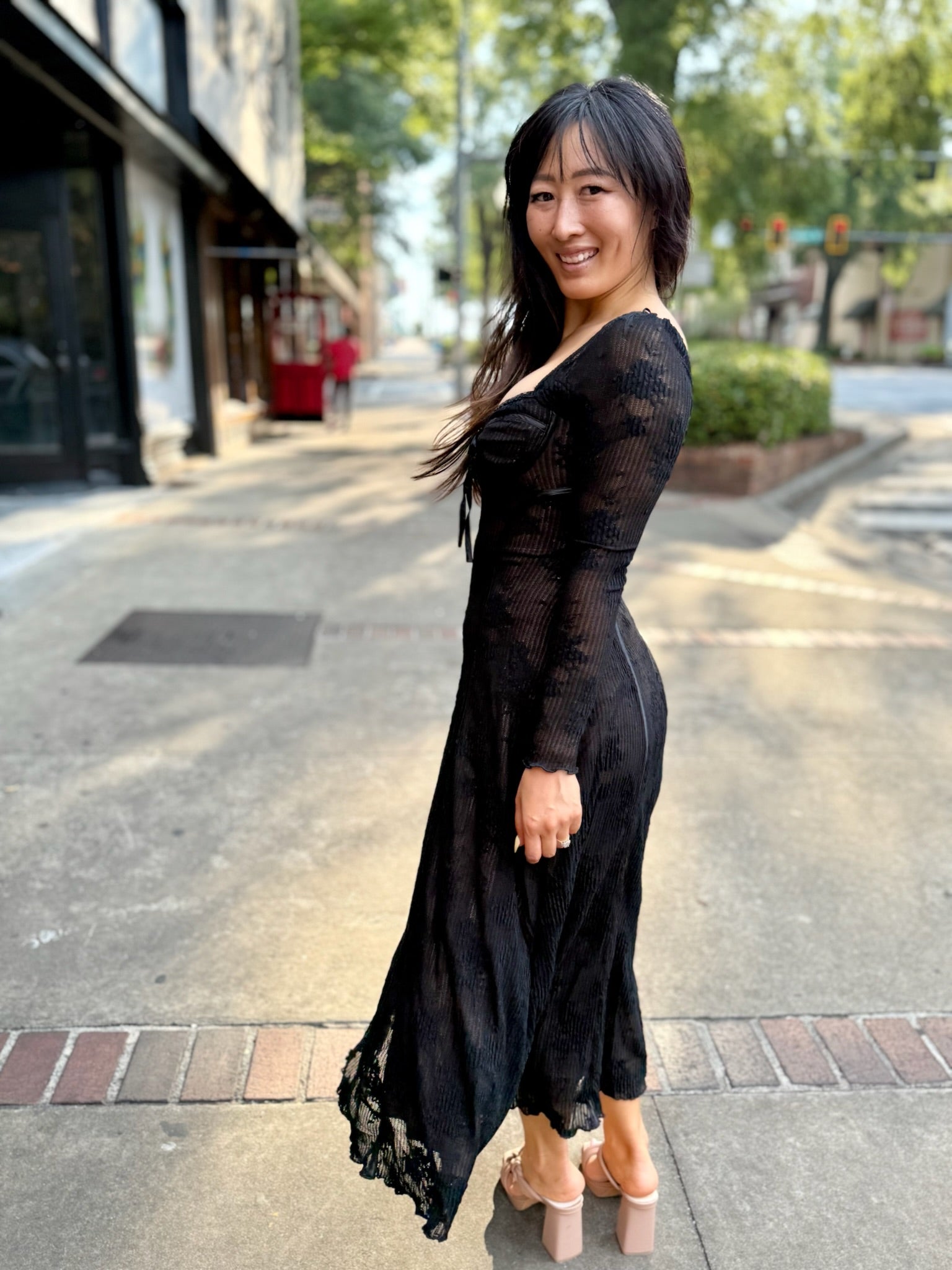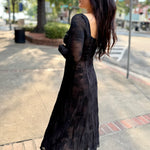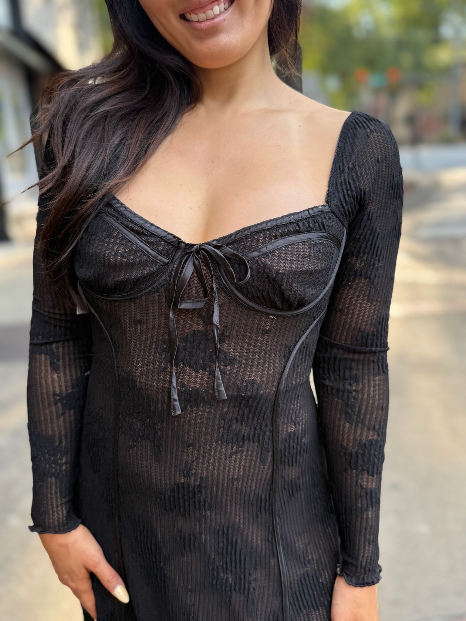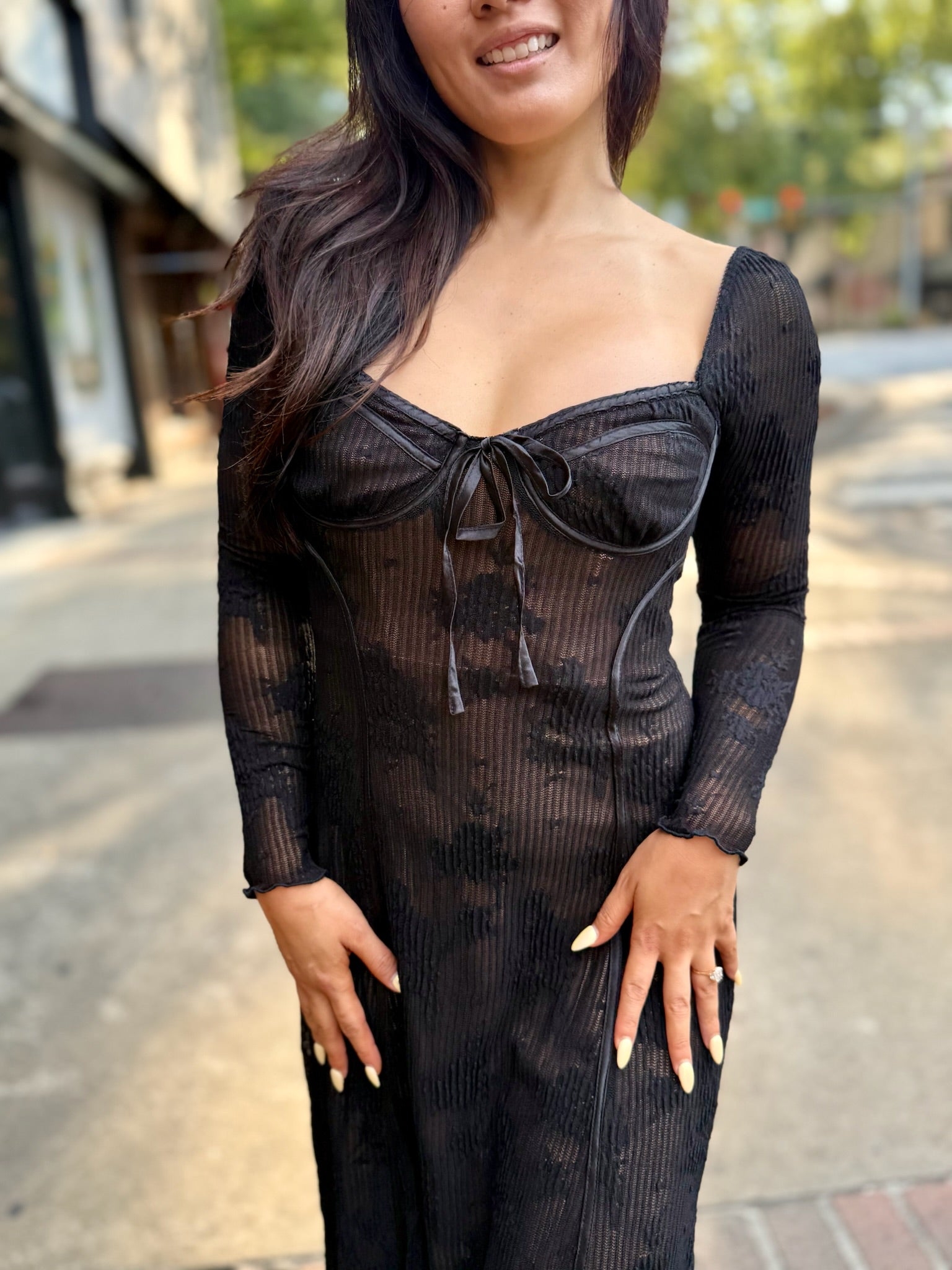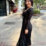 Black Sweetheart Neck Long Sleeve Lace Midi Dress