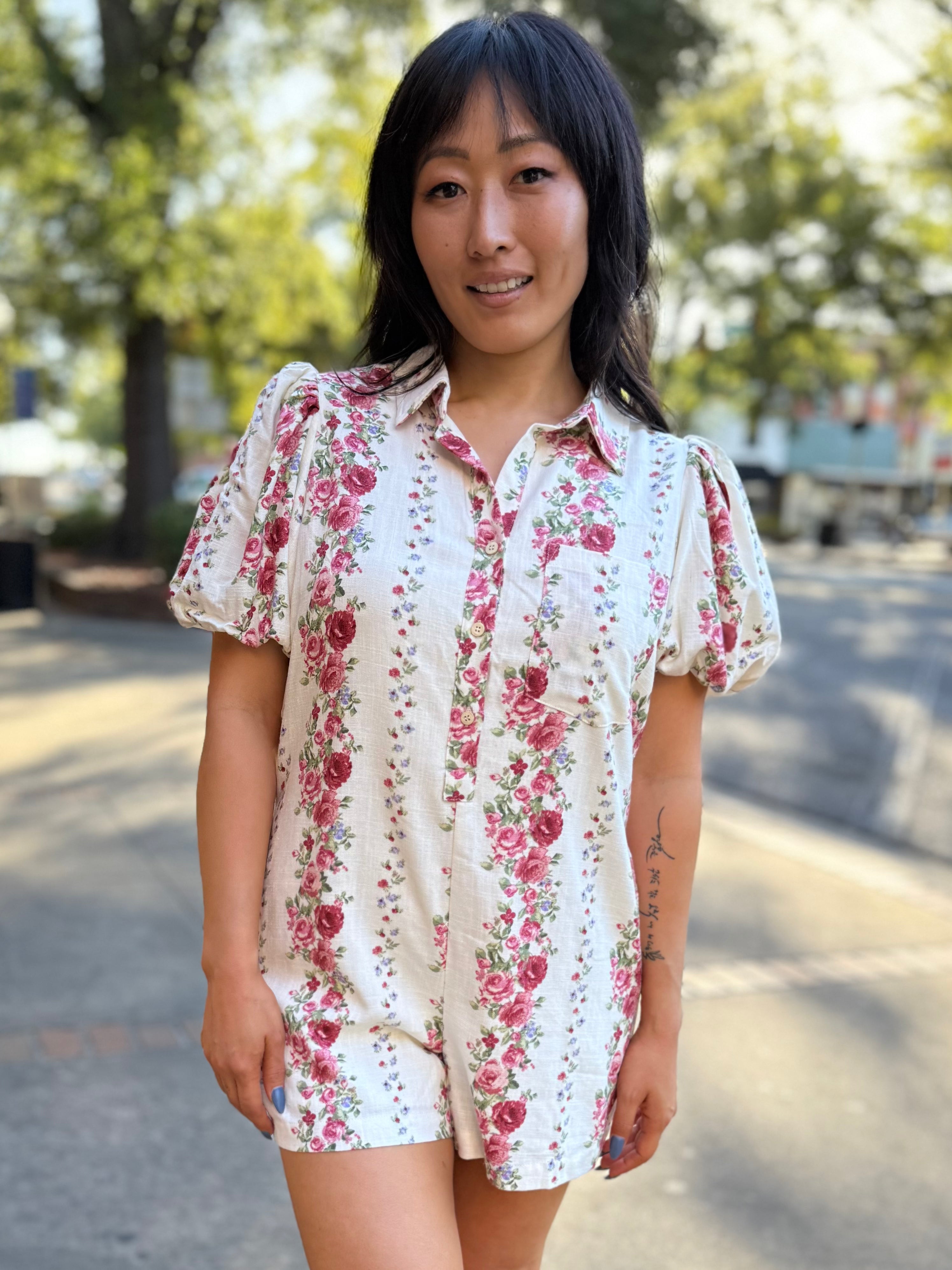 Effortless style meets everyday comfort in the Blossom Breeze Romper. Designed with a relaxed boxy fit, chic button-down front, and cuffed sleeves, this playful floral piece is perfect for brunch dates, beach strolls, or casual weekends. Lightweight and breezy, it’s the one-and-done outfit that makes looking put-together feel completely effortless.